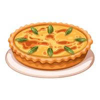 A savory tart filled with eggs, cream, cheese, and vegetables or meat.
