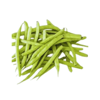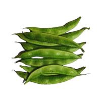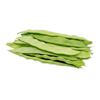 A flat green fruit vegetable bean with a soft texture. It is used in cooked meals.