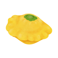 A small round squash fruit vegetable with scalloped edges. It is tender and easy to cook.