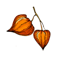 A small round fruit vegetable inside a papery cover. It has a slightly sour taste.