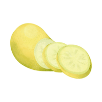 A bright yellow squash fruit vegetable. It has a mild taste and smooth skin.