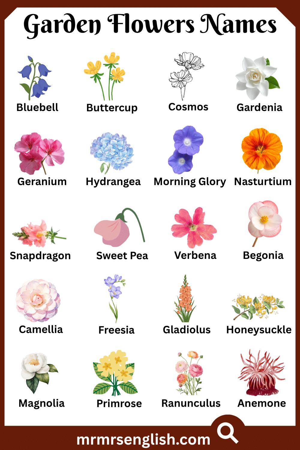 Types of Garden Flowers in English with Pictures