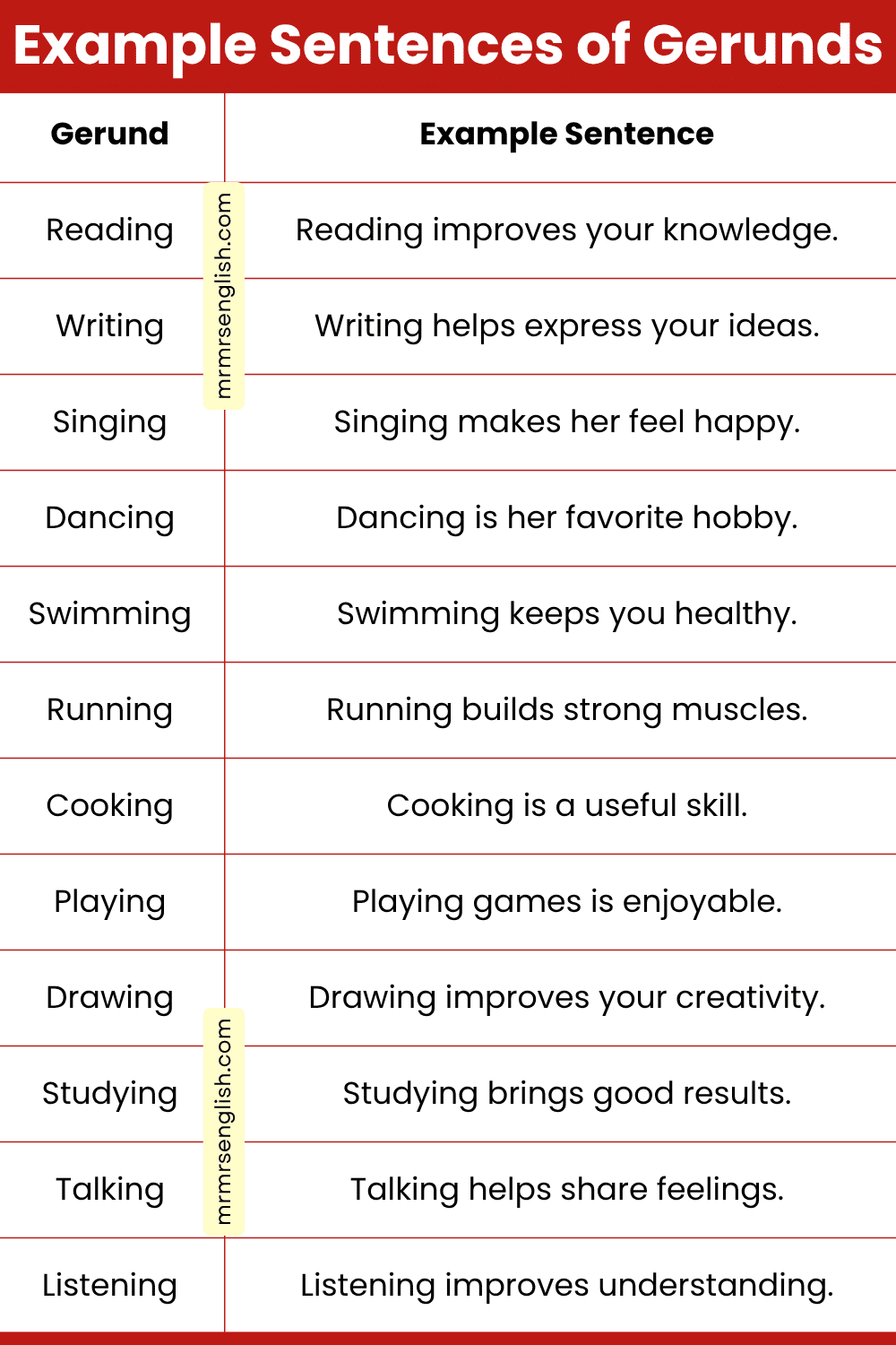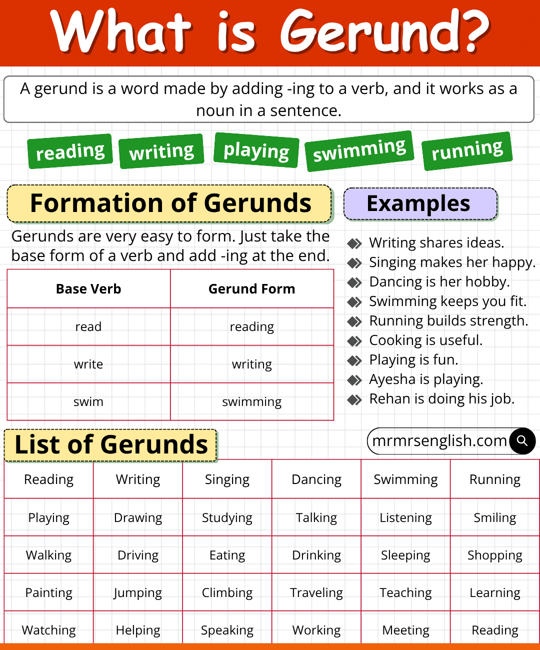 | Base Verb | Gerund Form |