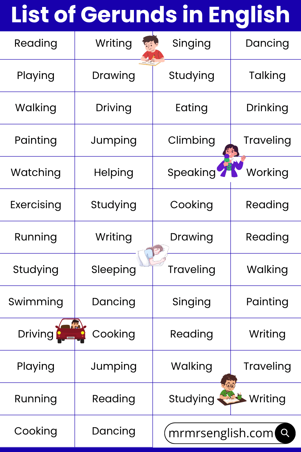 List of Gerunds in English with Pictures
