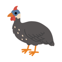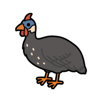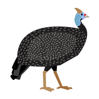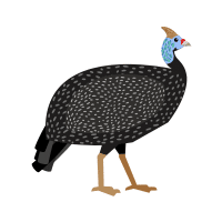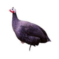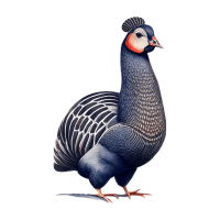 Smokey Guinea Fowl has dark gray plumage with a smoky overlay effect, producing a mysterious, elegant, and visually appealing presence.