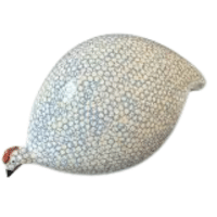 Sky Blue Guinea Fowl features light bluish-gray feathers resembling clear sky tones, combined with fine spotting that enhances its delicate appearance.