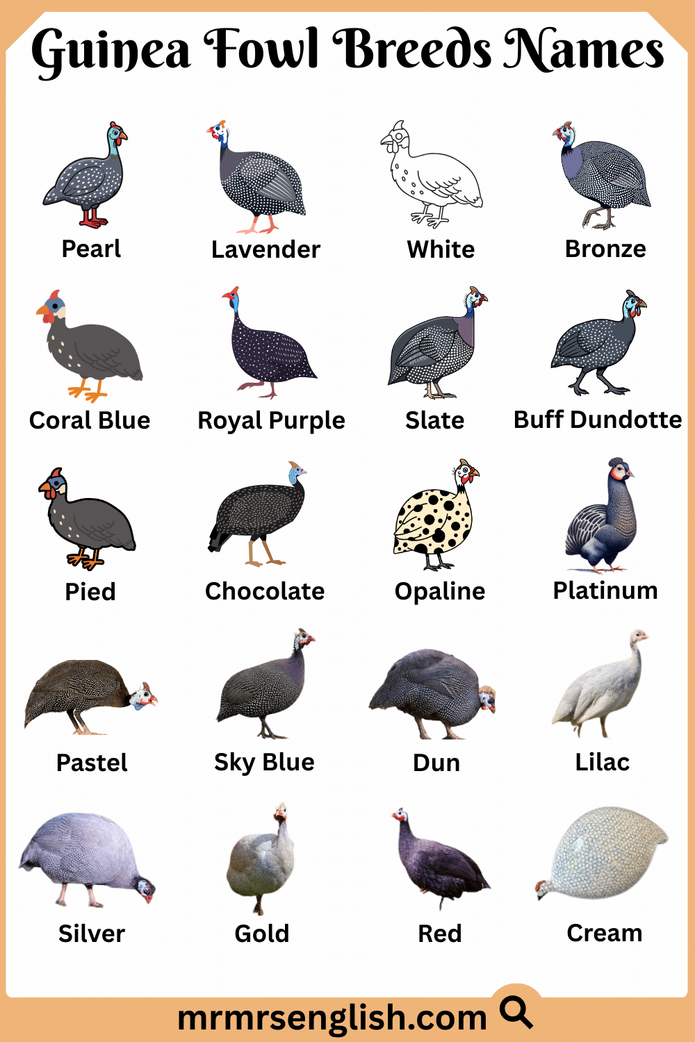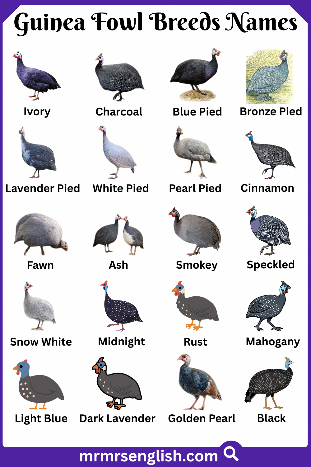 Types of Guinea Fowl Names in English with Pictures