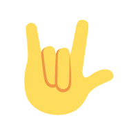 A hand sign made by extending the thumb, index, and little finger, used to say “I love you.”