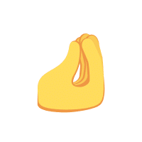 A hand gesture showing all fingers together, often used to express emphasis or question (“What?”).