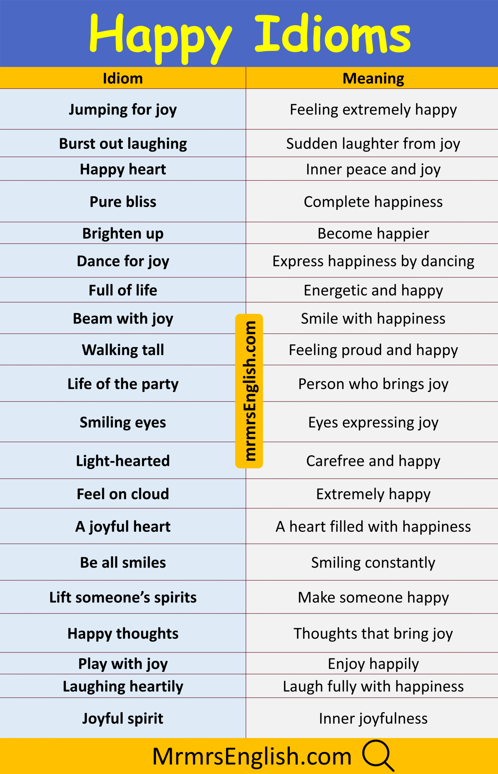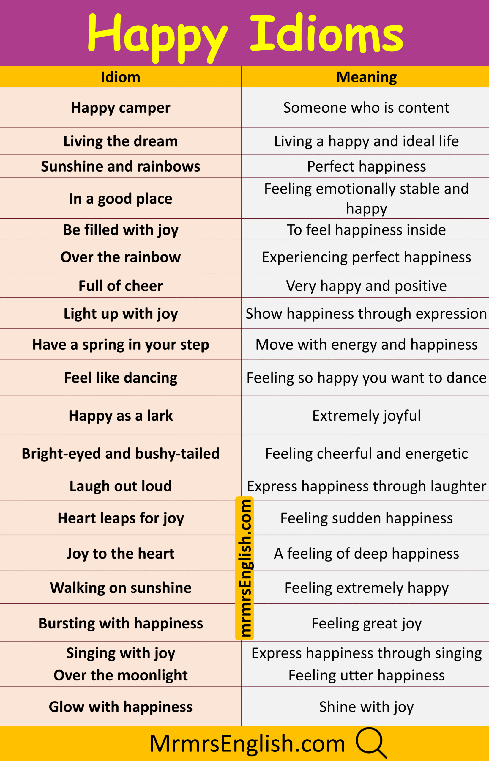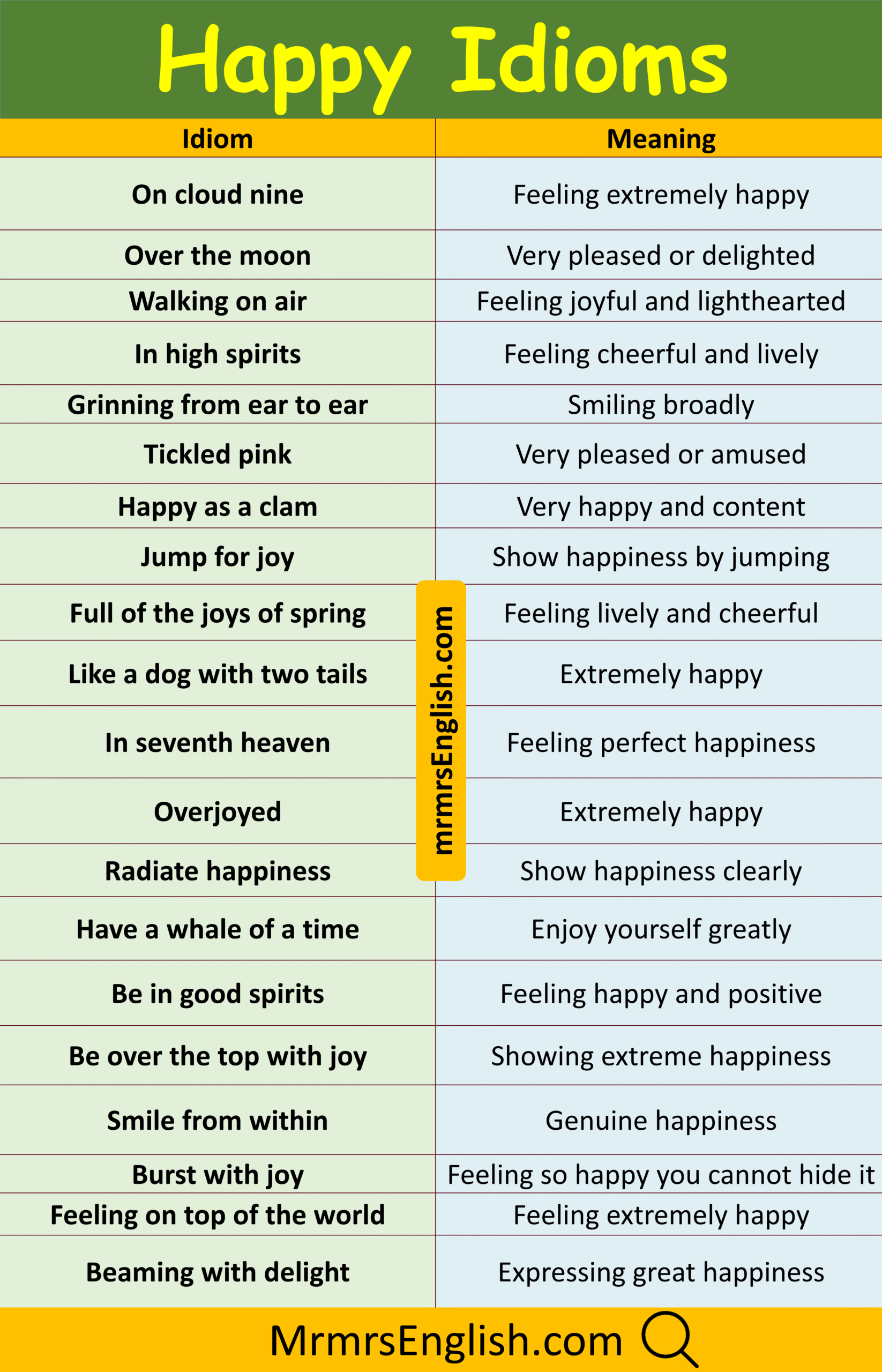 Popular Happy Idioms in English with Pictures