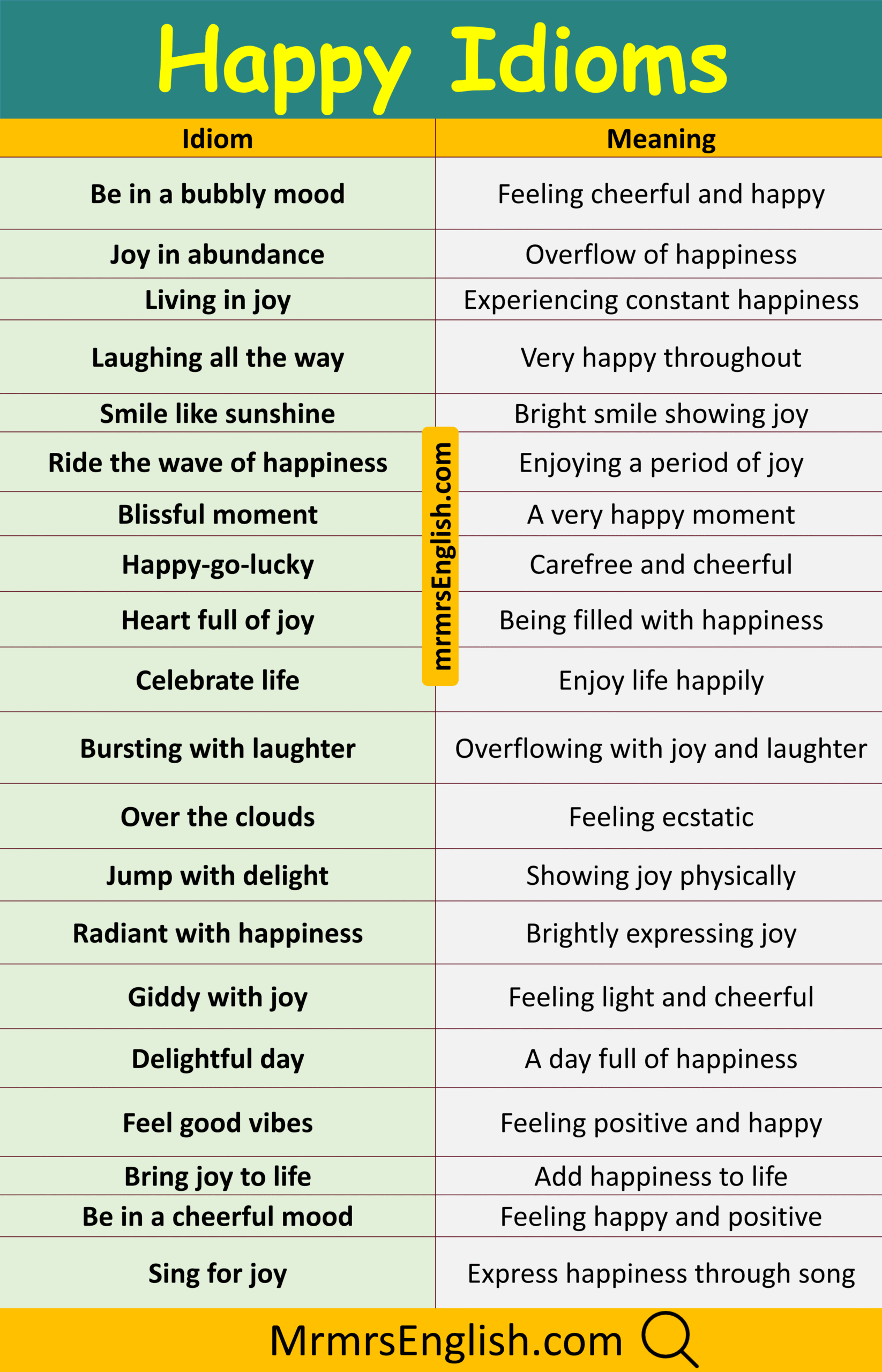 Essential Happy Idioms with Meanings