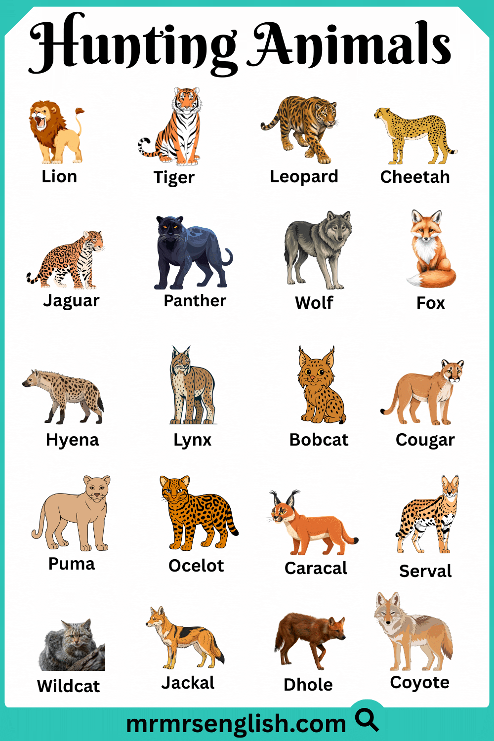 Different Types of Hunting Animals with Names and Pictures