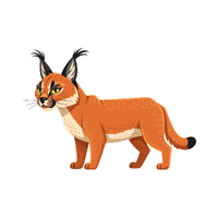 A medium cat with pointed tufted ears. Fast and agile, hunts birds and rodents in open areas.