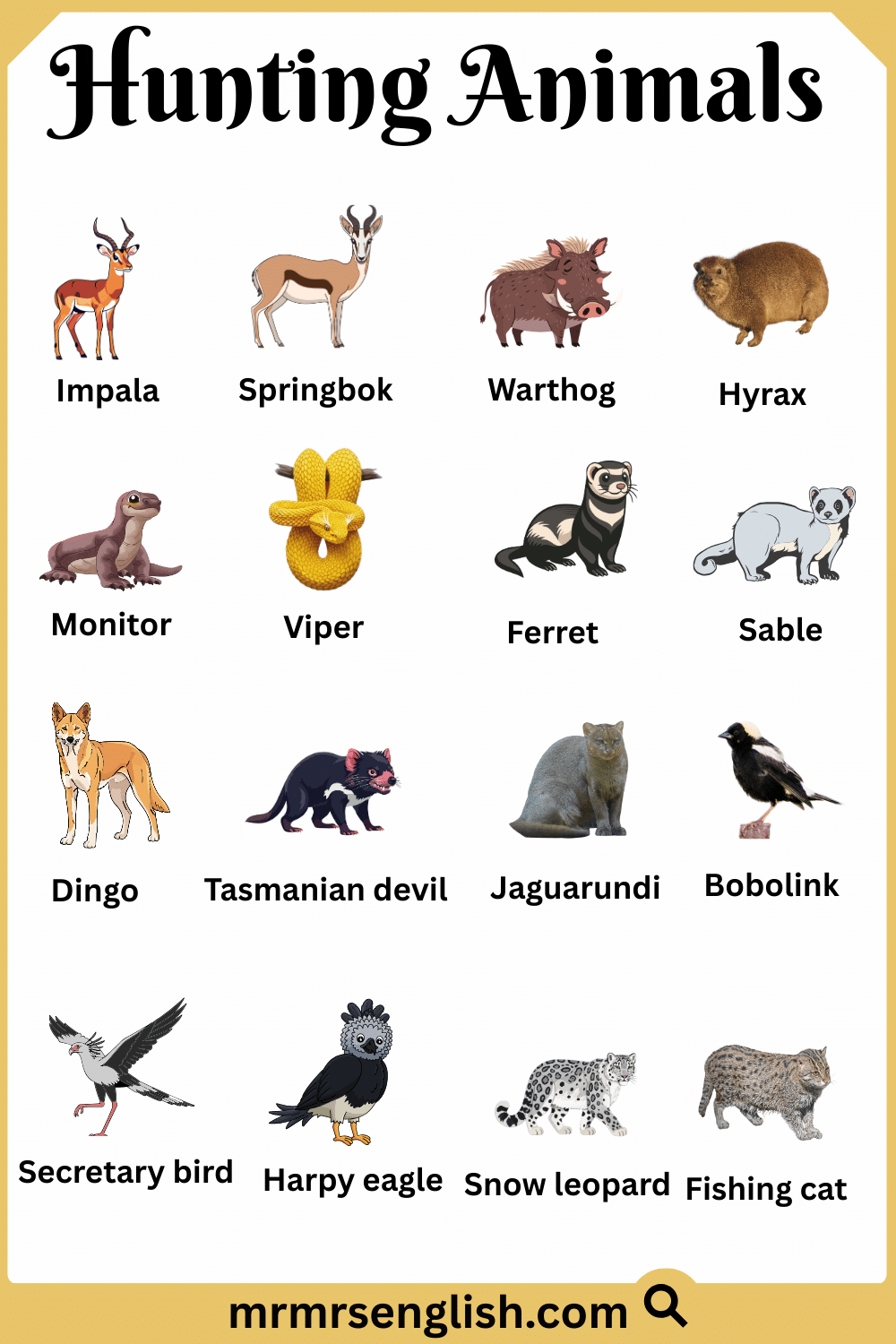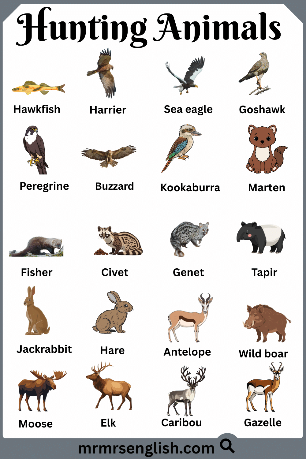 Hunting Animals Names in English with Their Pictures