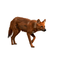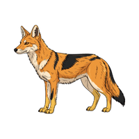 A small wild canine. Hunts small animals alone or in pairs and often scavenges for food.