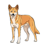 A wild dog from Australia. Hunts in packs or alone, preying on rabbits, kangaroos, and birds.