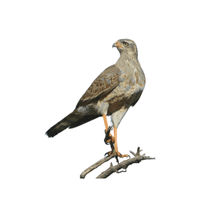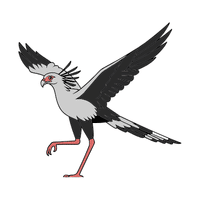 A tall bird of prey from Africa. Hunts snakes, insects, and small mammals on the ground.