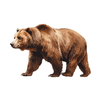 A brown bear found in forests and mountains. Strong and hunts fish, small animals, and sometimes larger prey.