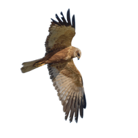 A medium-sized bird of prey. Hunts small mammals and birds while flying low over fields.
