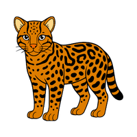 A powerful cat with spots. Found in rainforests and riversides, it can swim well to catch prey.
