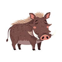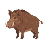 A wild pig with tusks. Primarily herbivorous but can defend itself and flee from predators.
