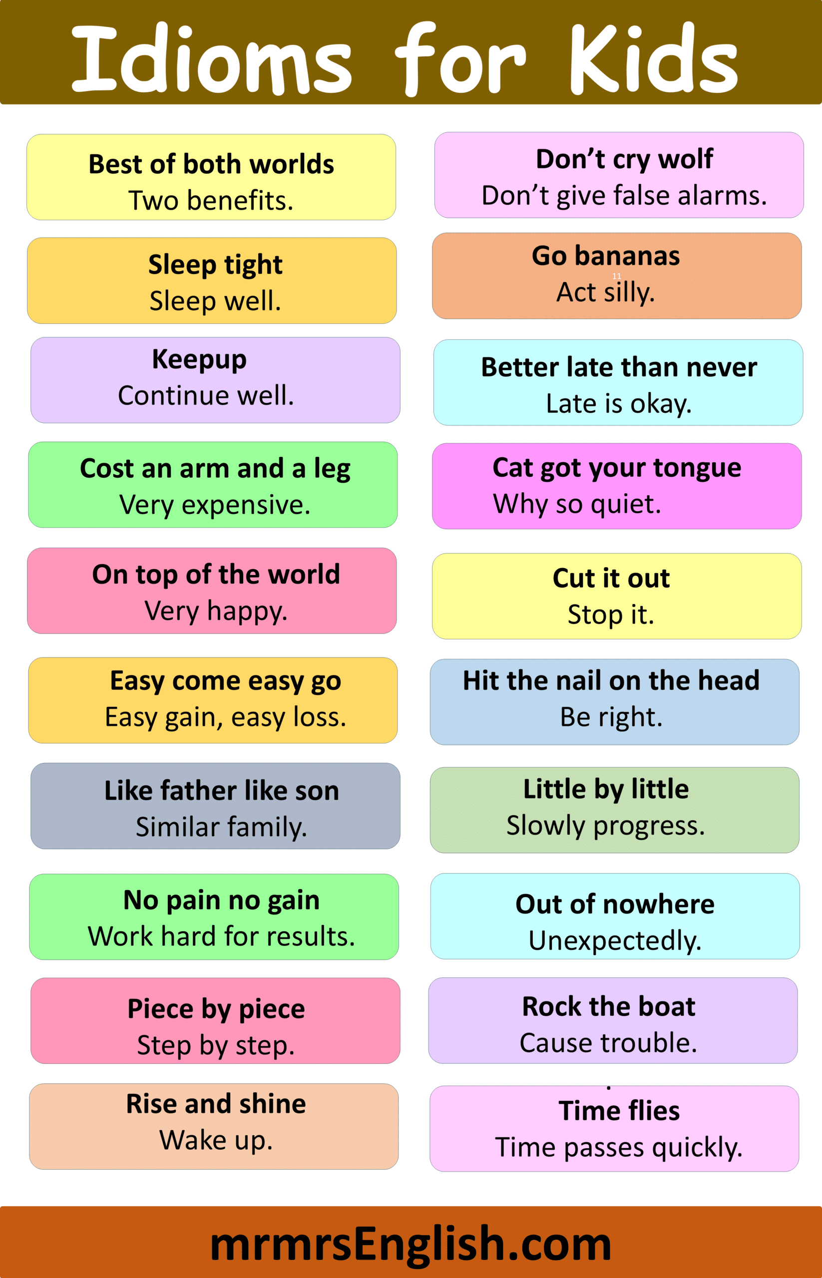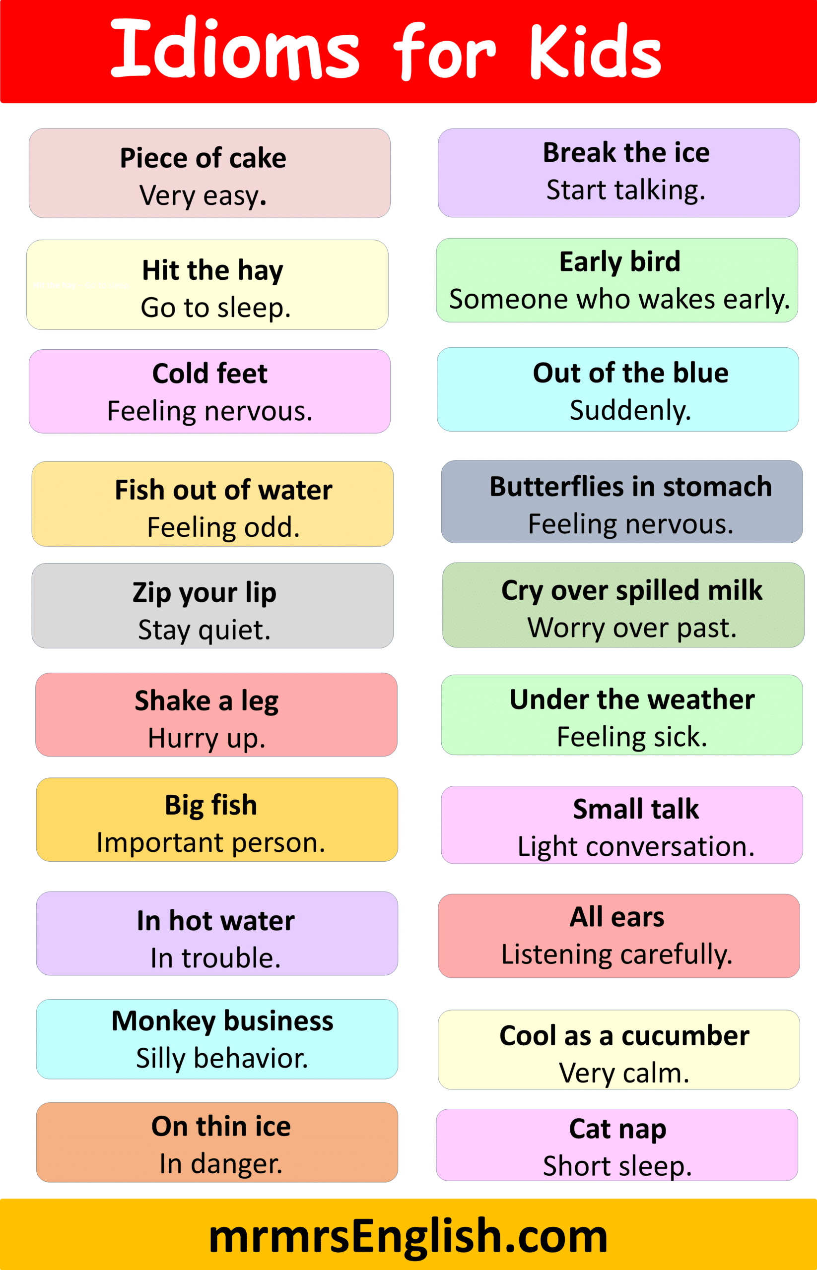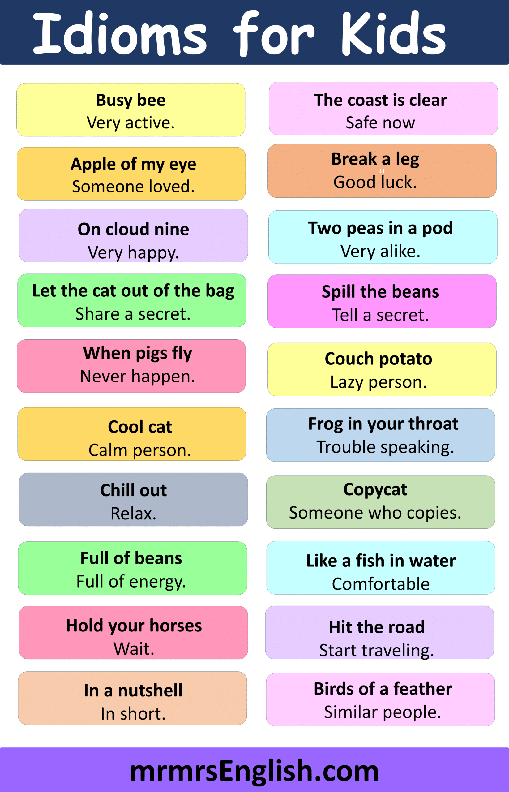 Examples of Idioms with meaning for Children in English