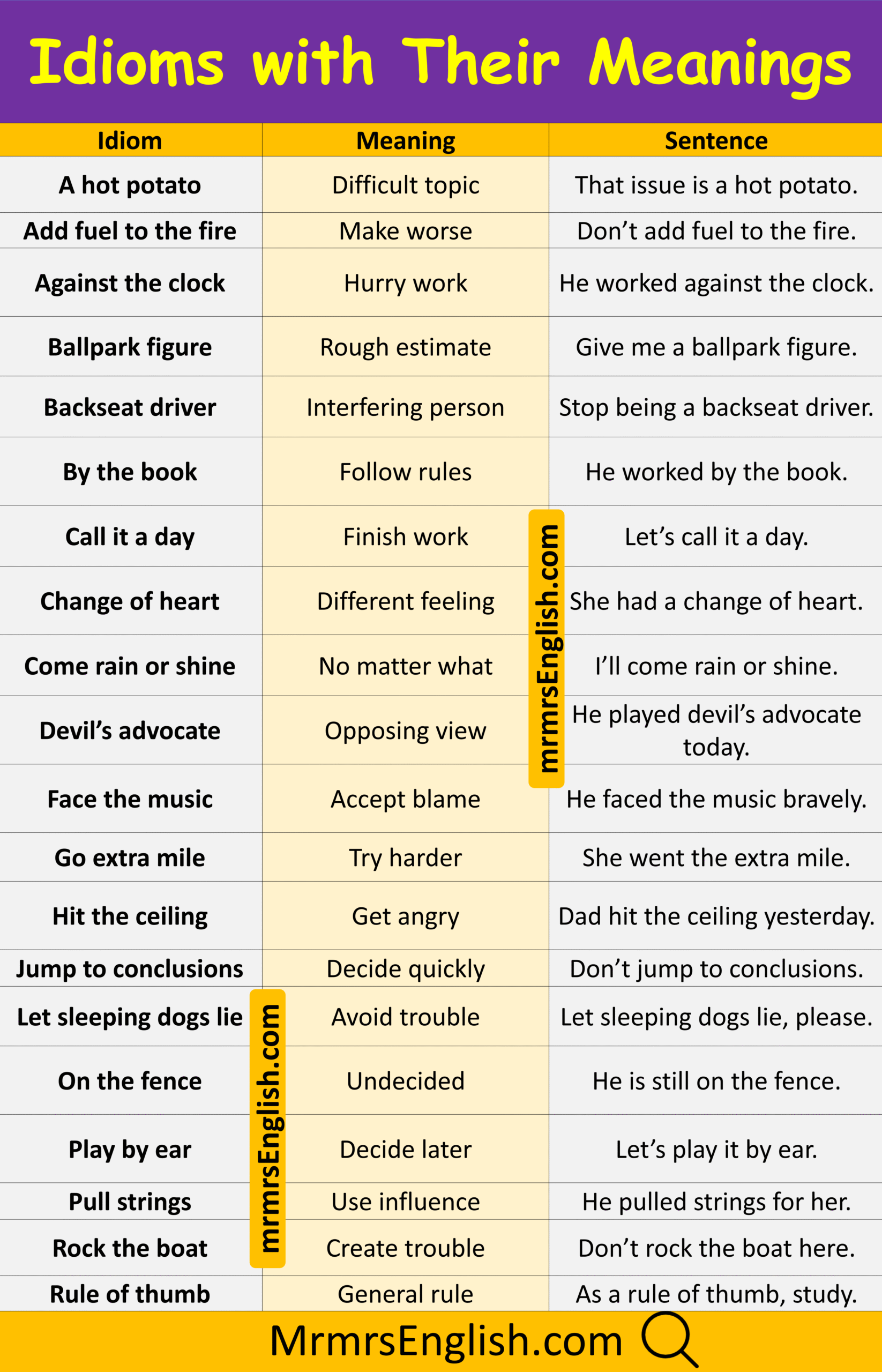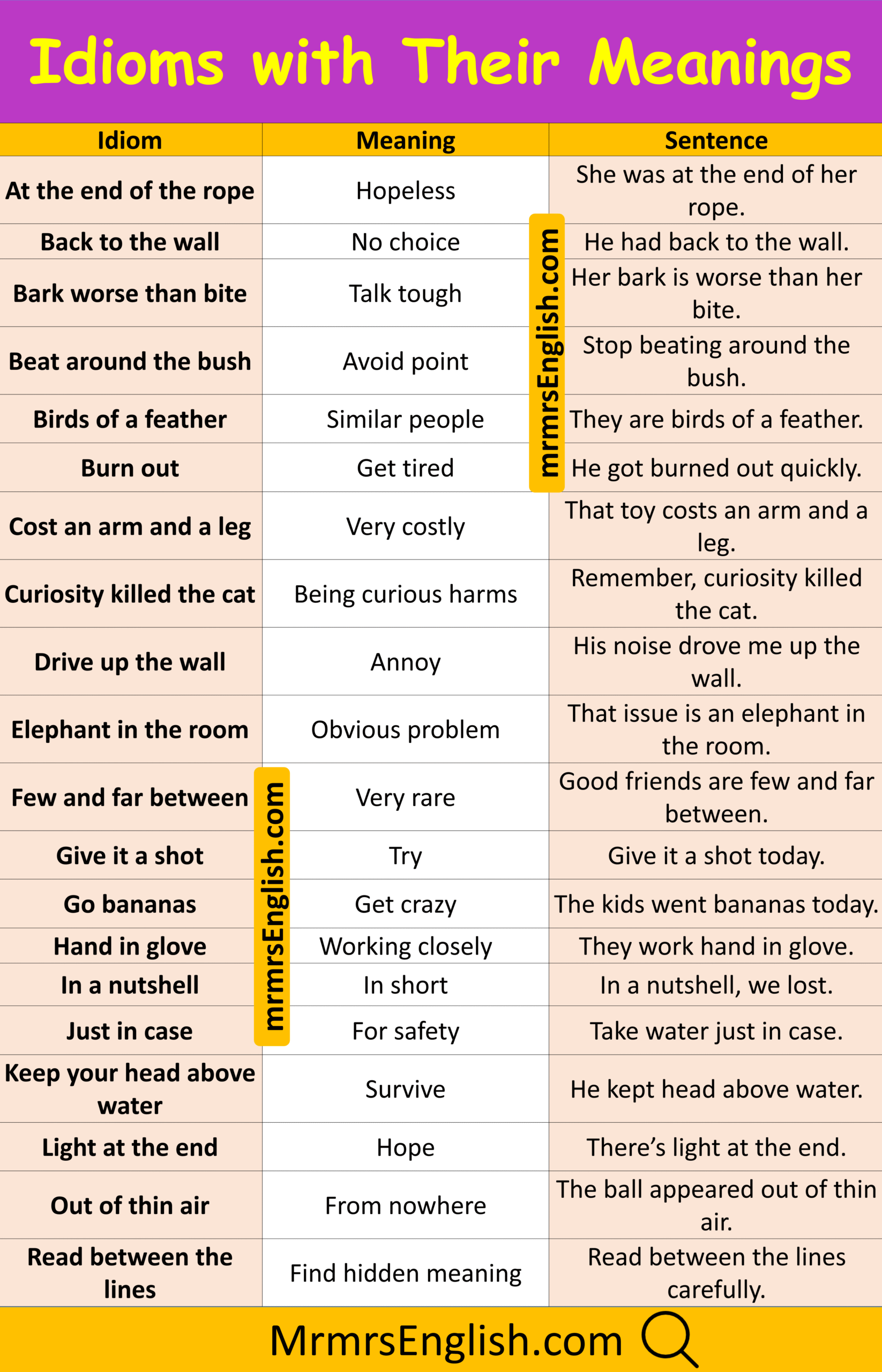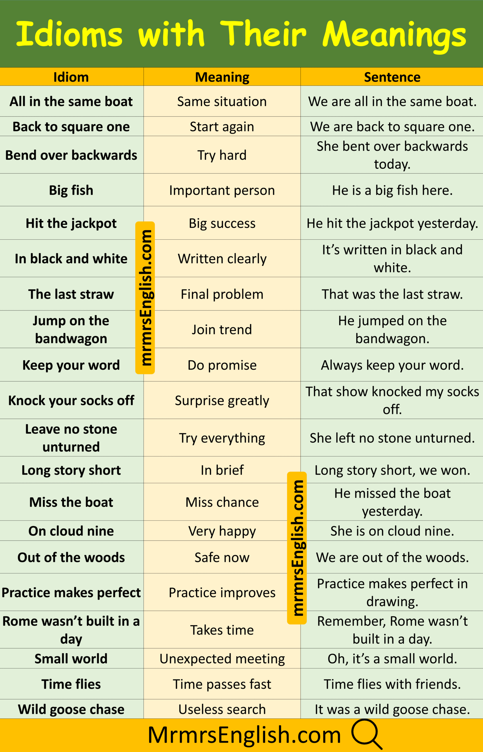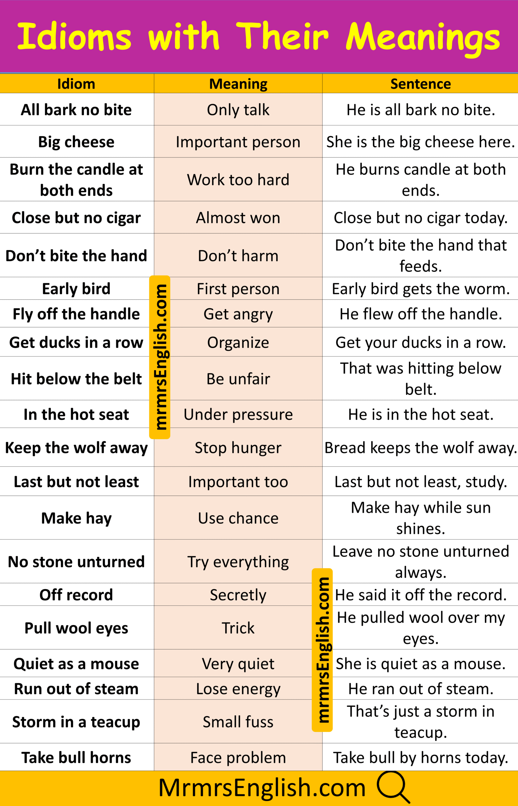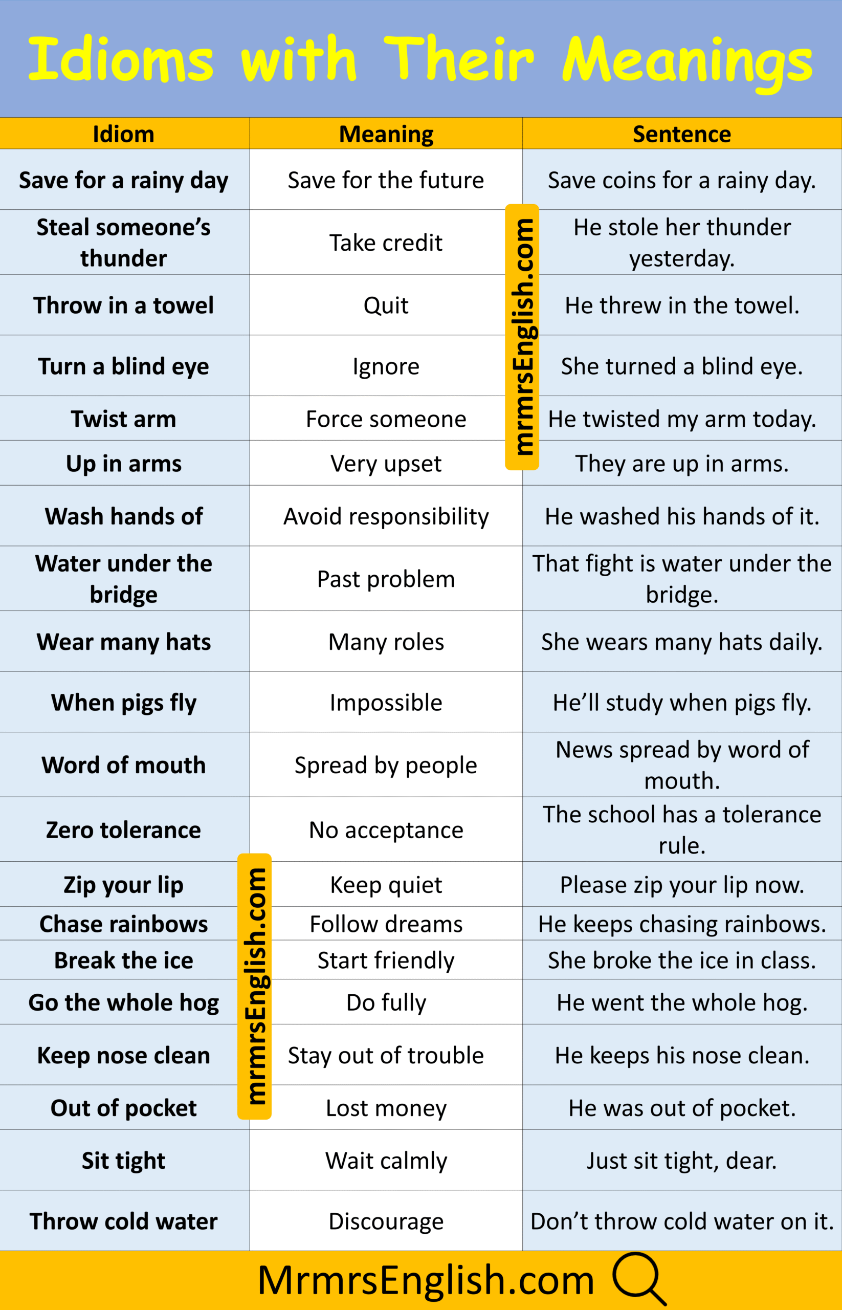 Powerful Idioms with Their Meanings and Sentences with Pictures