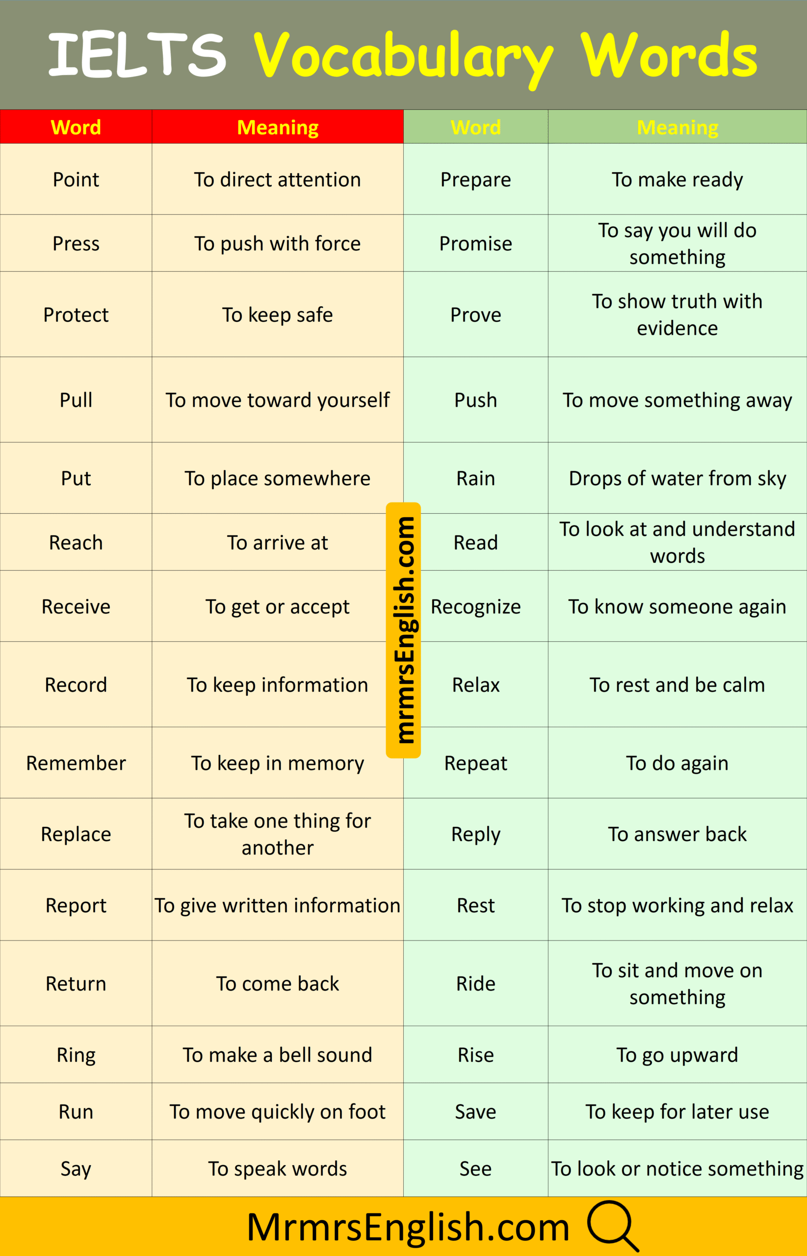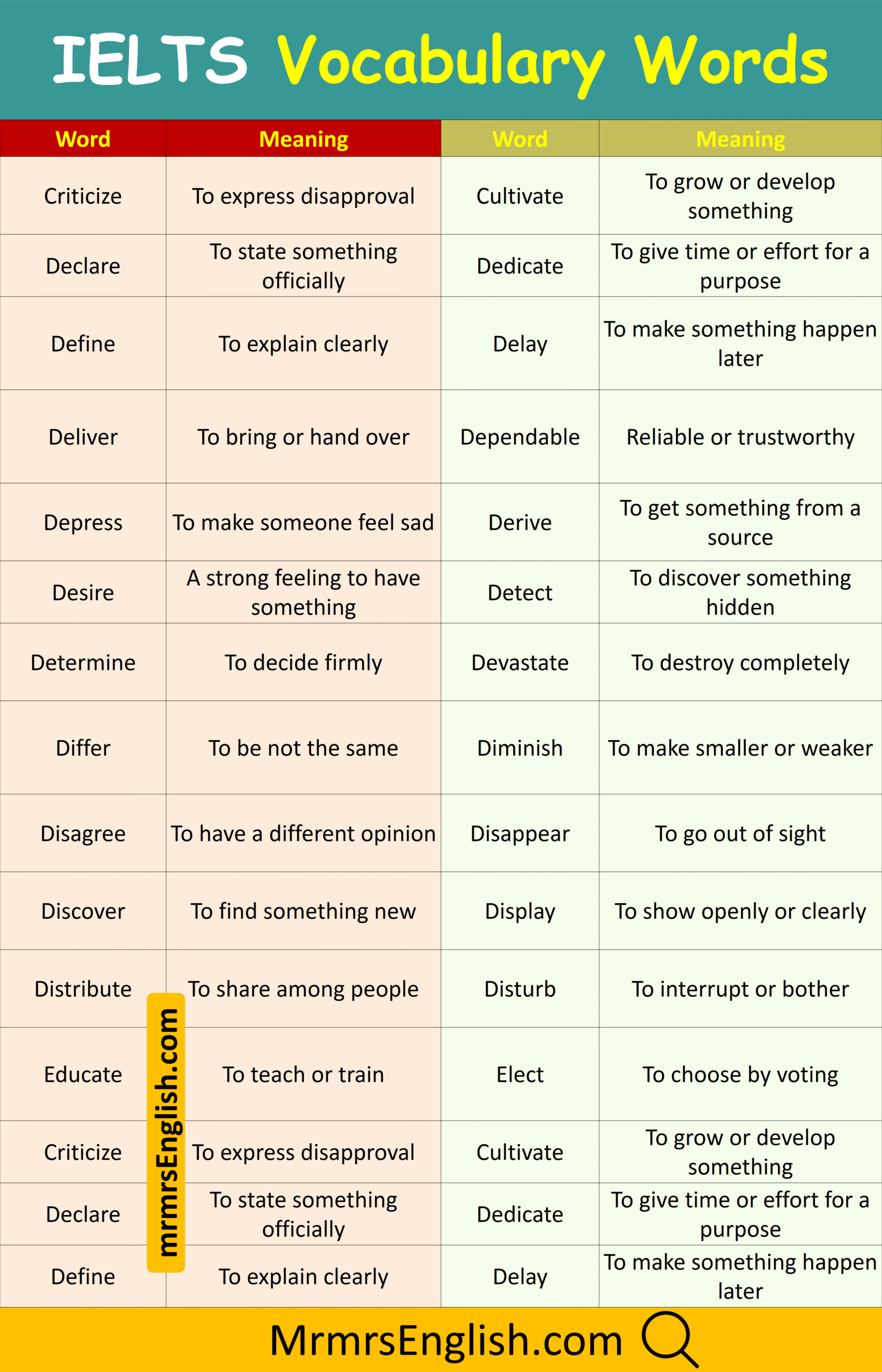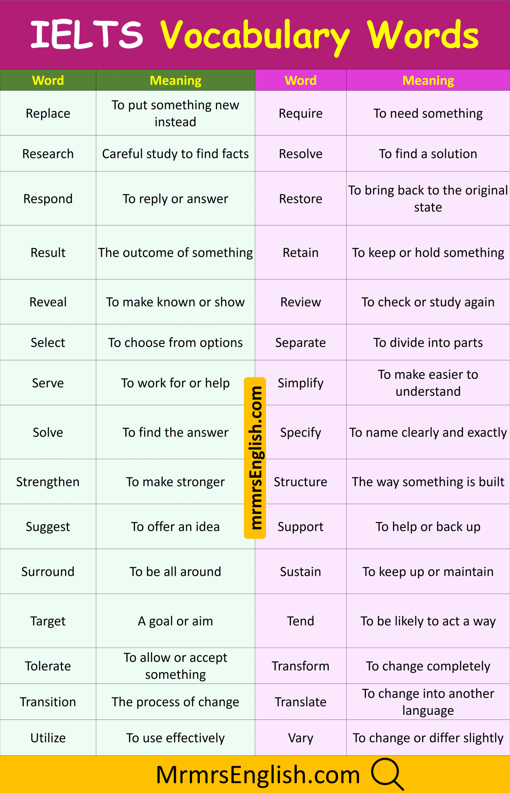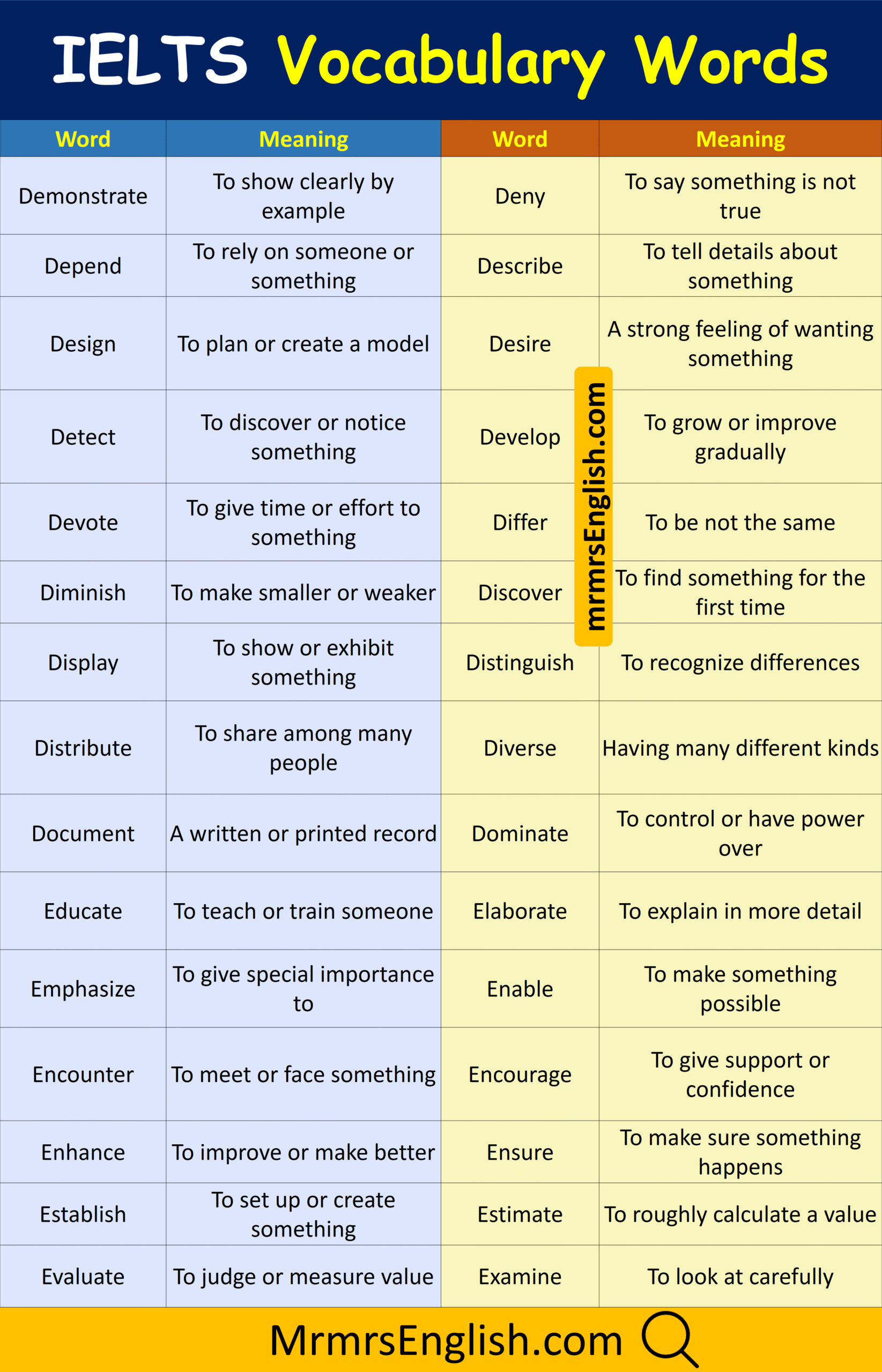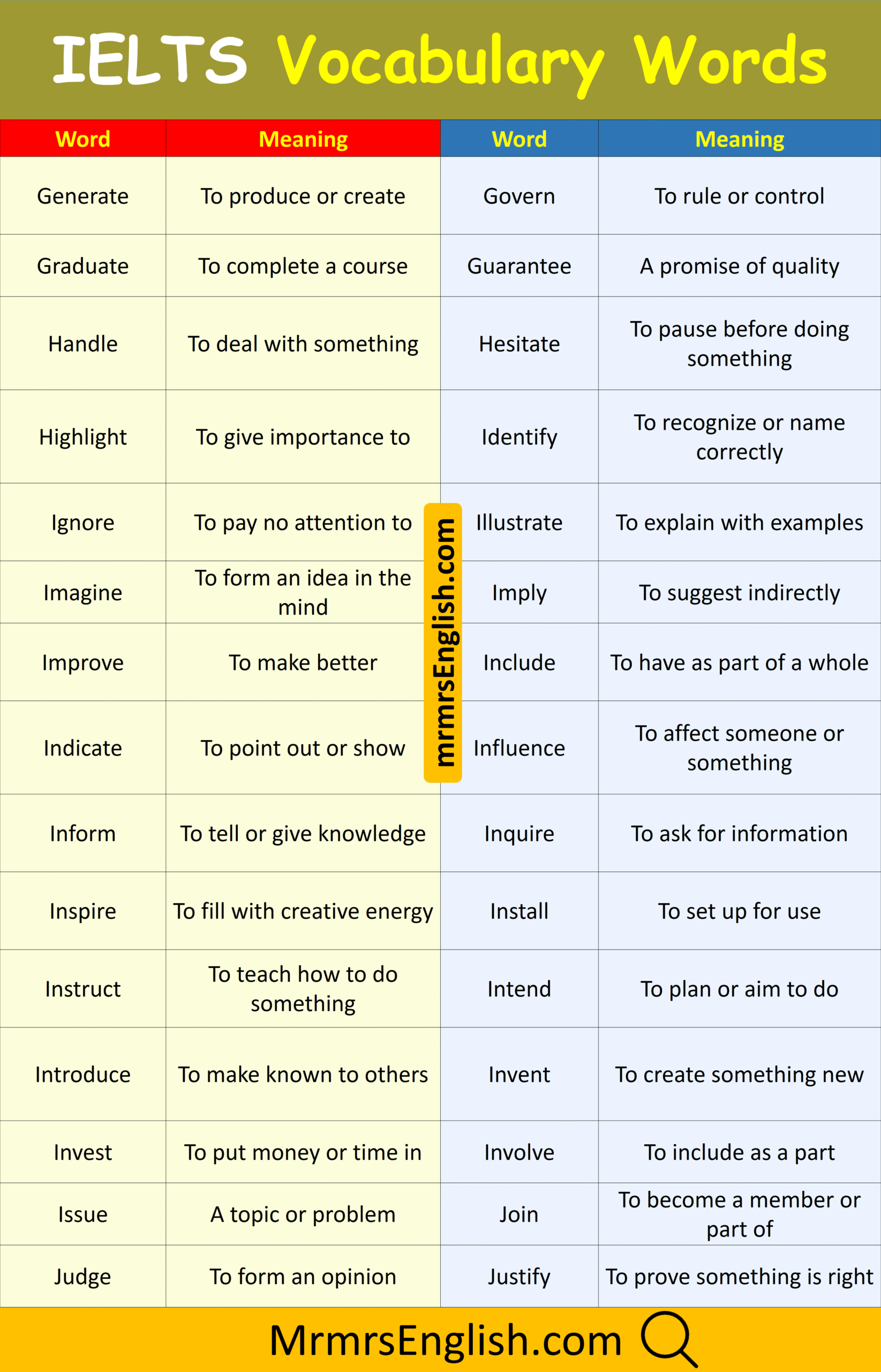 Learning IELTS vocabulary words with meanings in English is one of the best ways to prepare for the IELTS exam. A strong vocabulary helps you express your ideas clearly in speaking and writing, and it also improves your understanding in reading and listening sections. Knowing the right words can make a big difference in your overall band score. In this article, you will learn important IELTS vocabulary words with their clear meanings and pictures to make learning simple and effective. This guide is perfect for students who want to achieve a high score and communicate confidently in English.