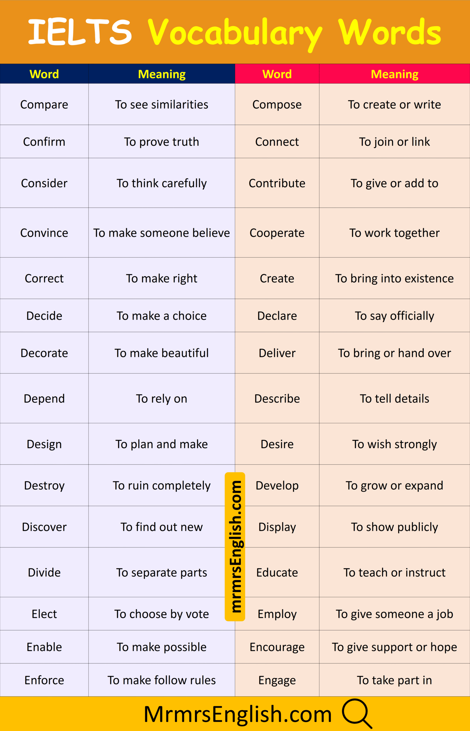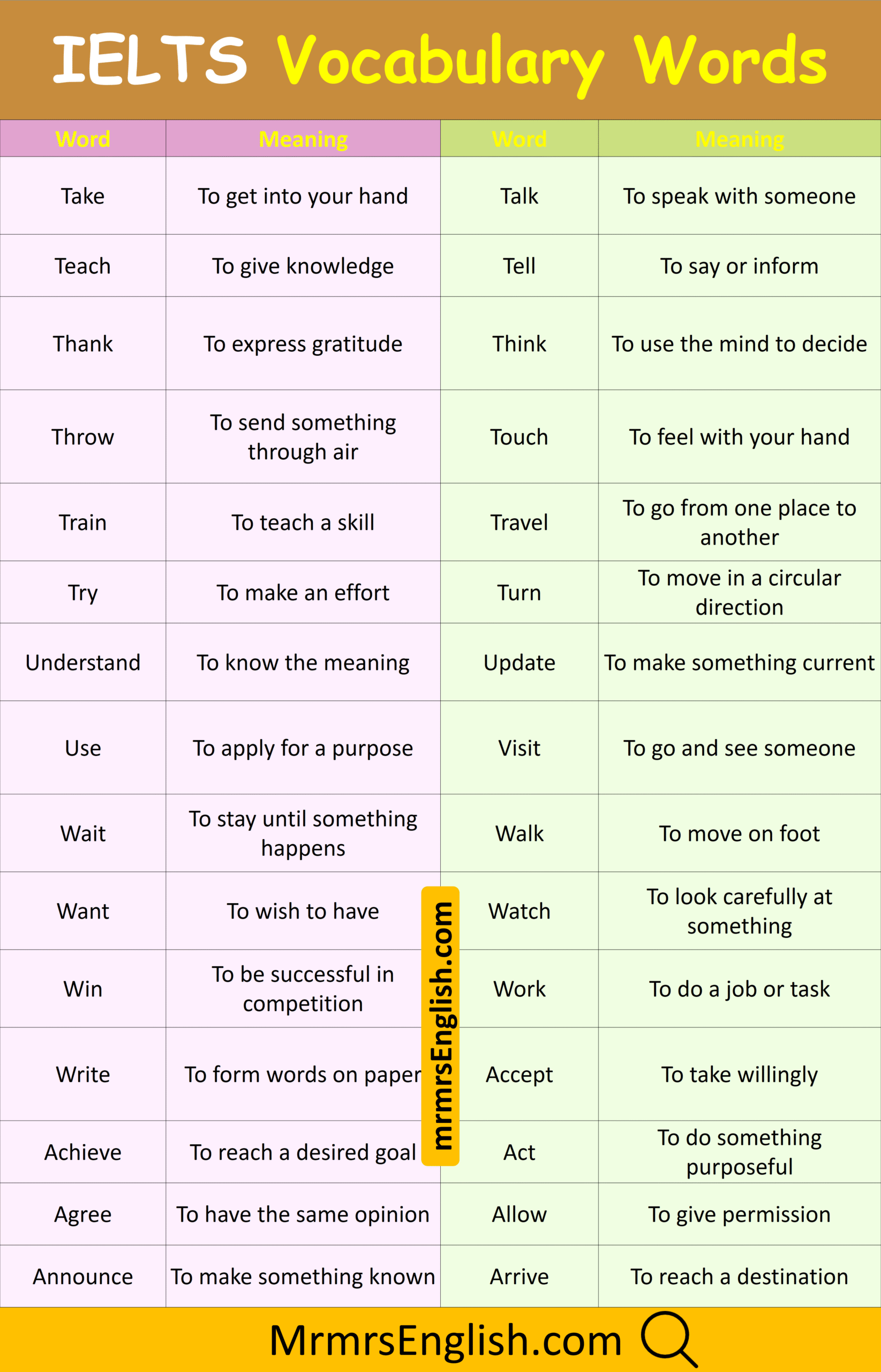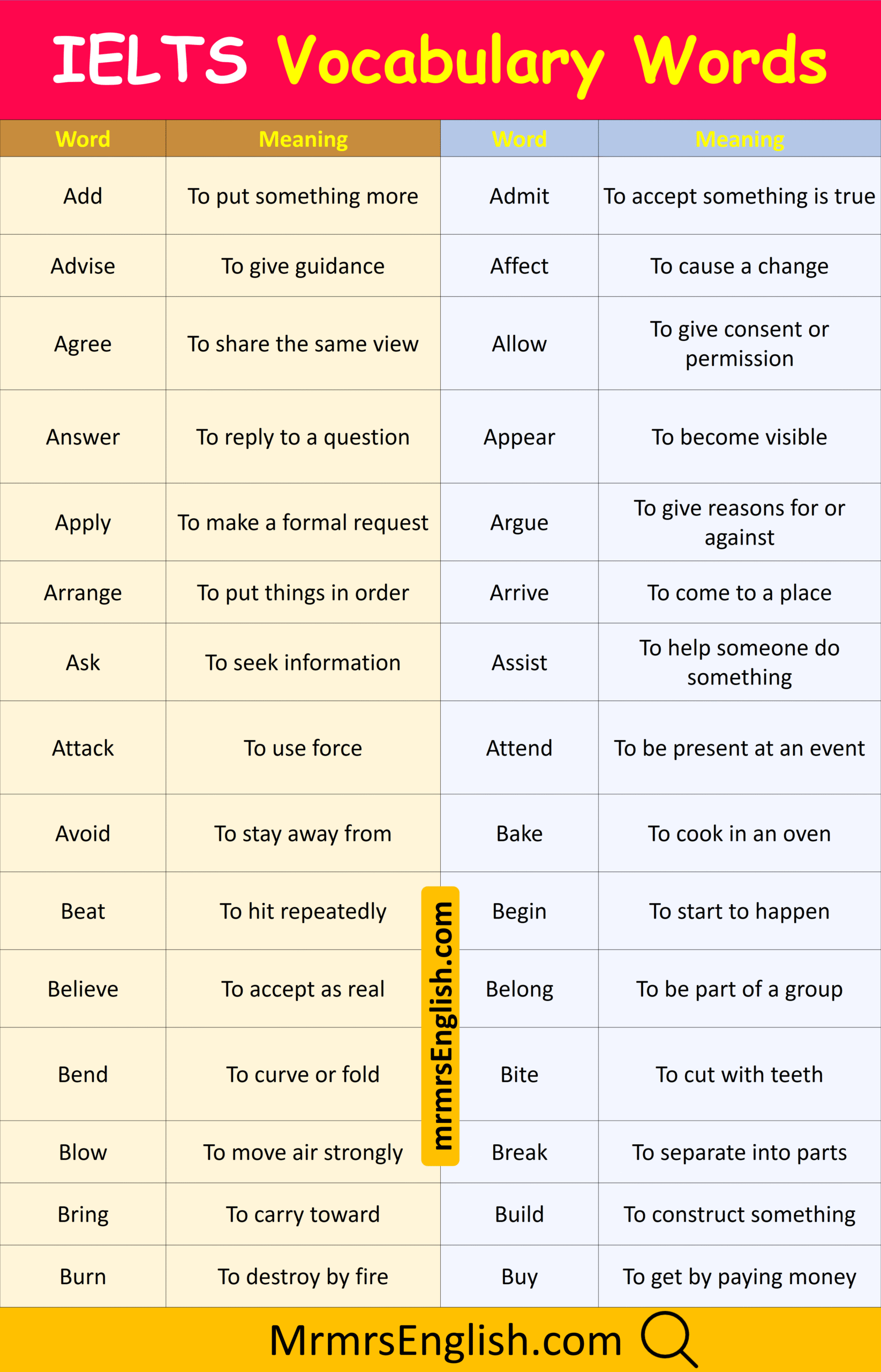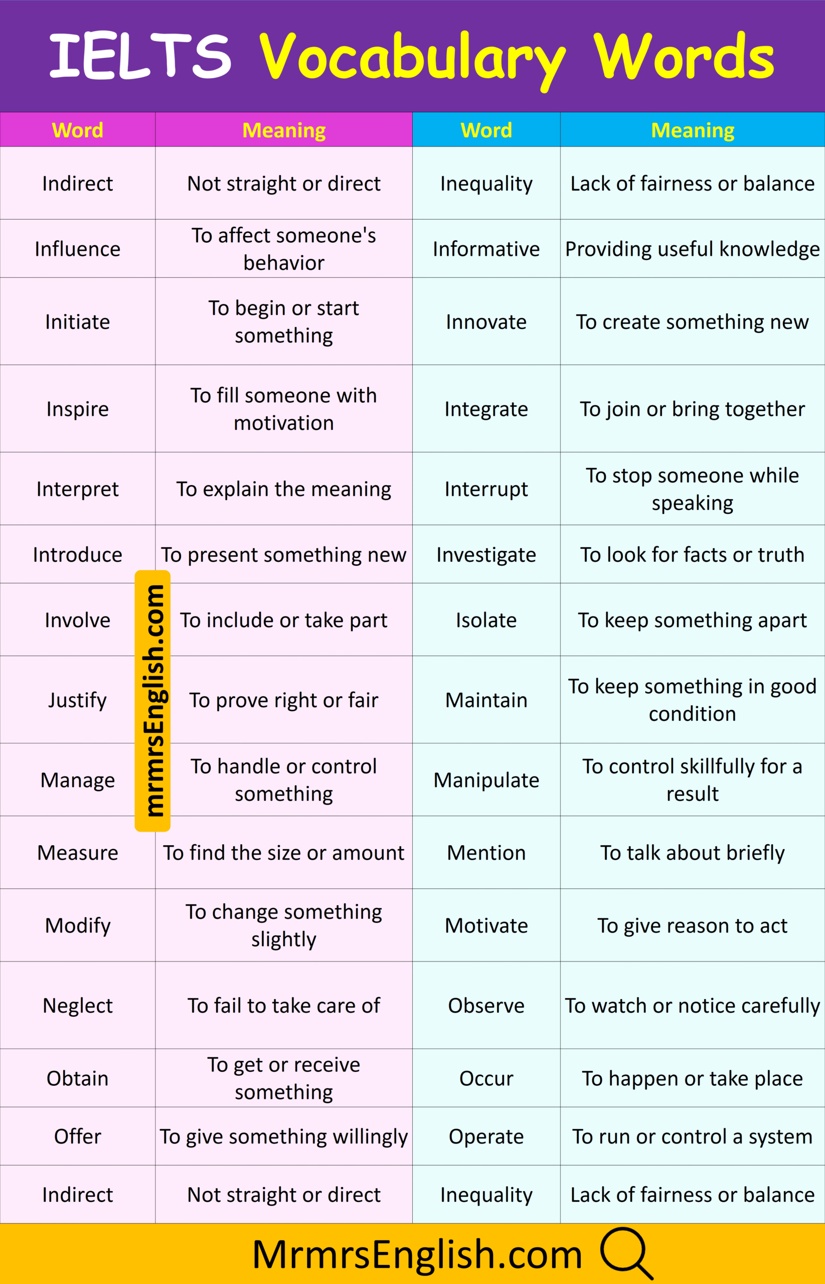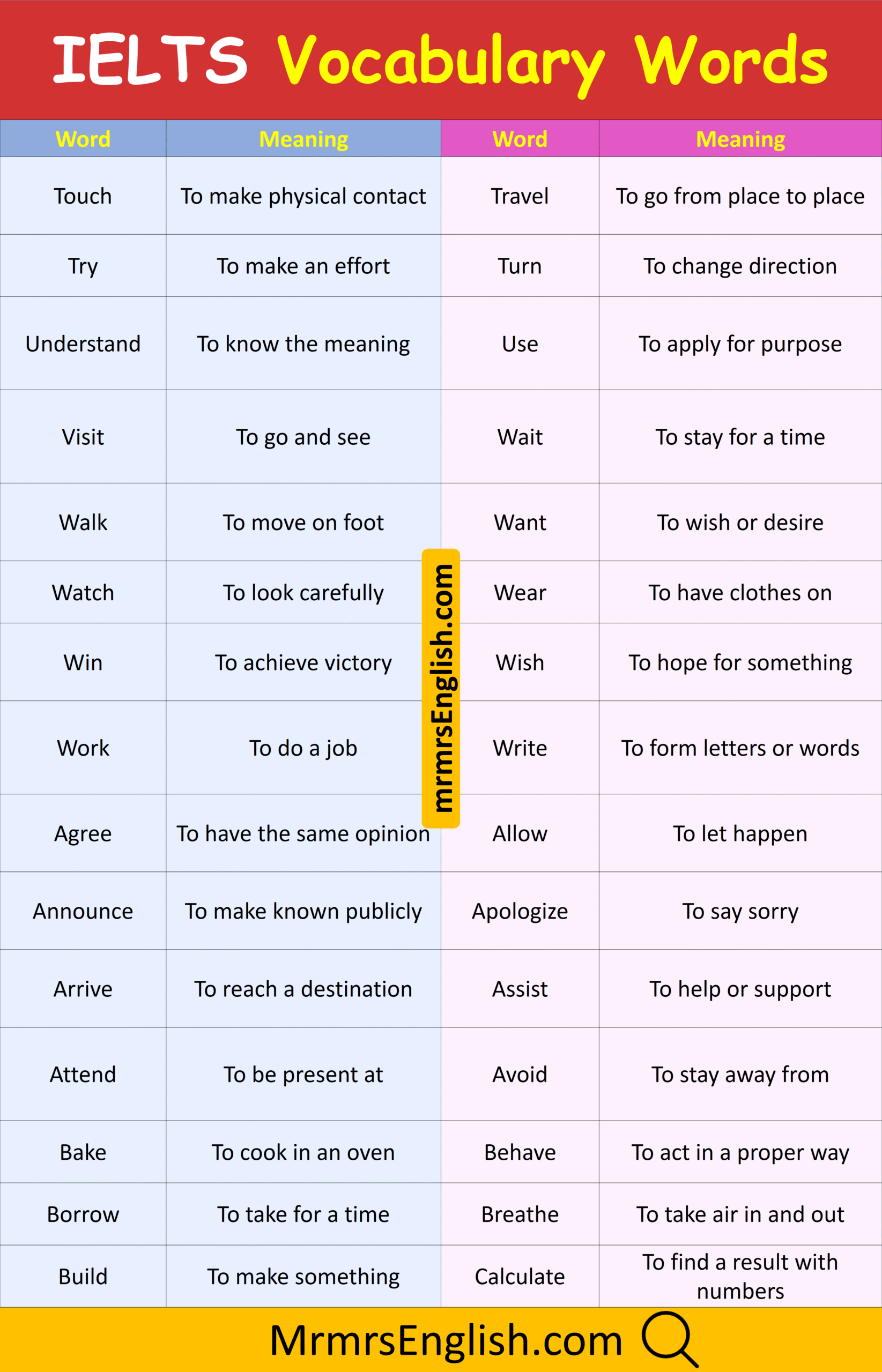 Learning IELTS vocabulary words with meanings in English is one of the best ways to prepare for the IELTS exam. A strong vocabulary helps you express your ideas clearly in speaking and writing, and it also improves your understanding in reading and listening sections. Knowing the right words can make a big difference in your overall band score. In this article, you will learn important IELTS vocabulary words with their clear meanings and pictures to make learning simple and effective. This guide is perfect for students who want to achieve a high score and communicate confidently in English.