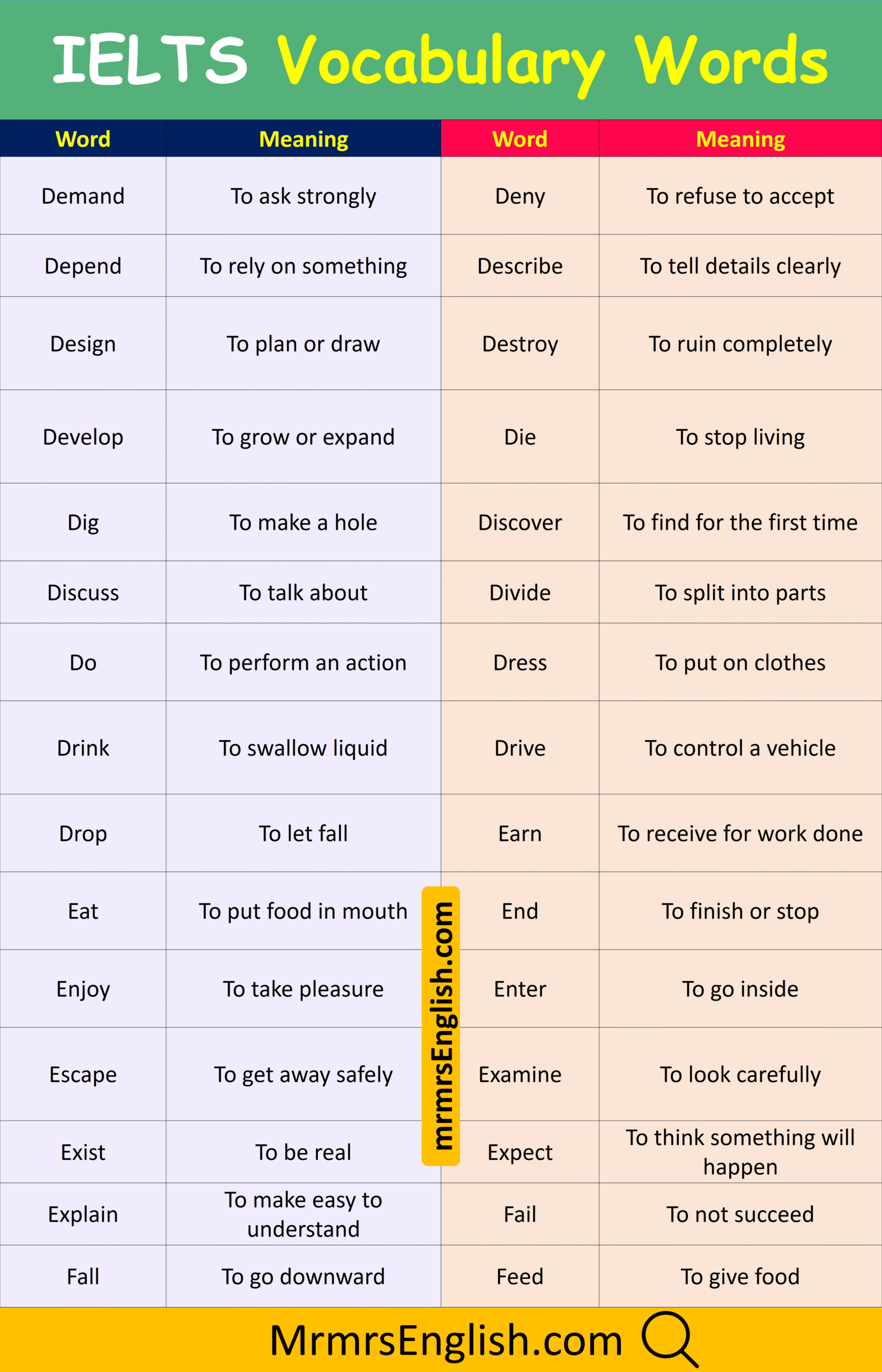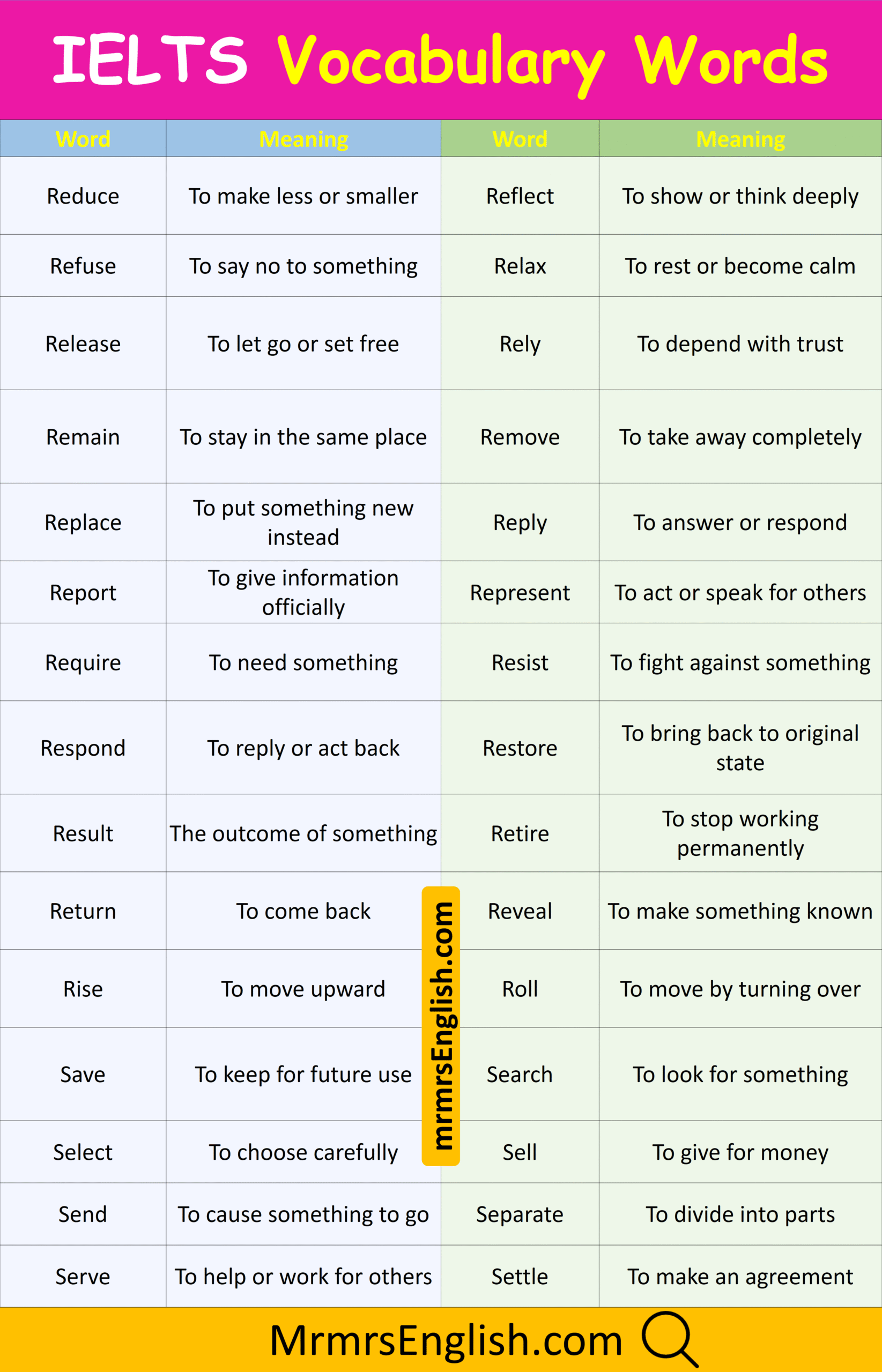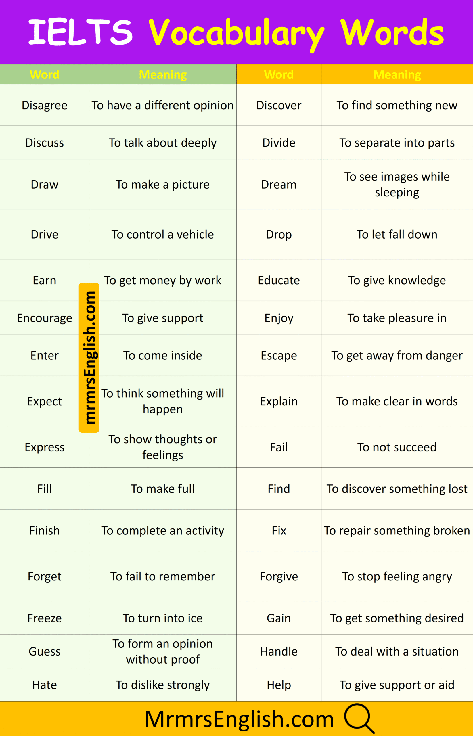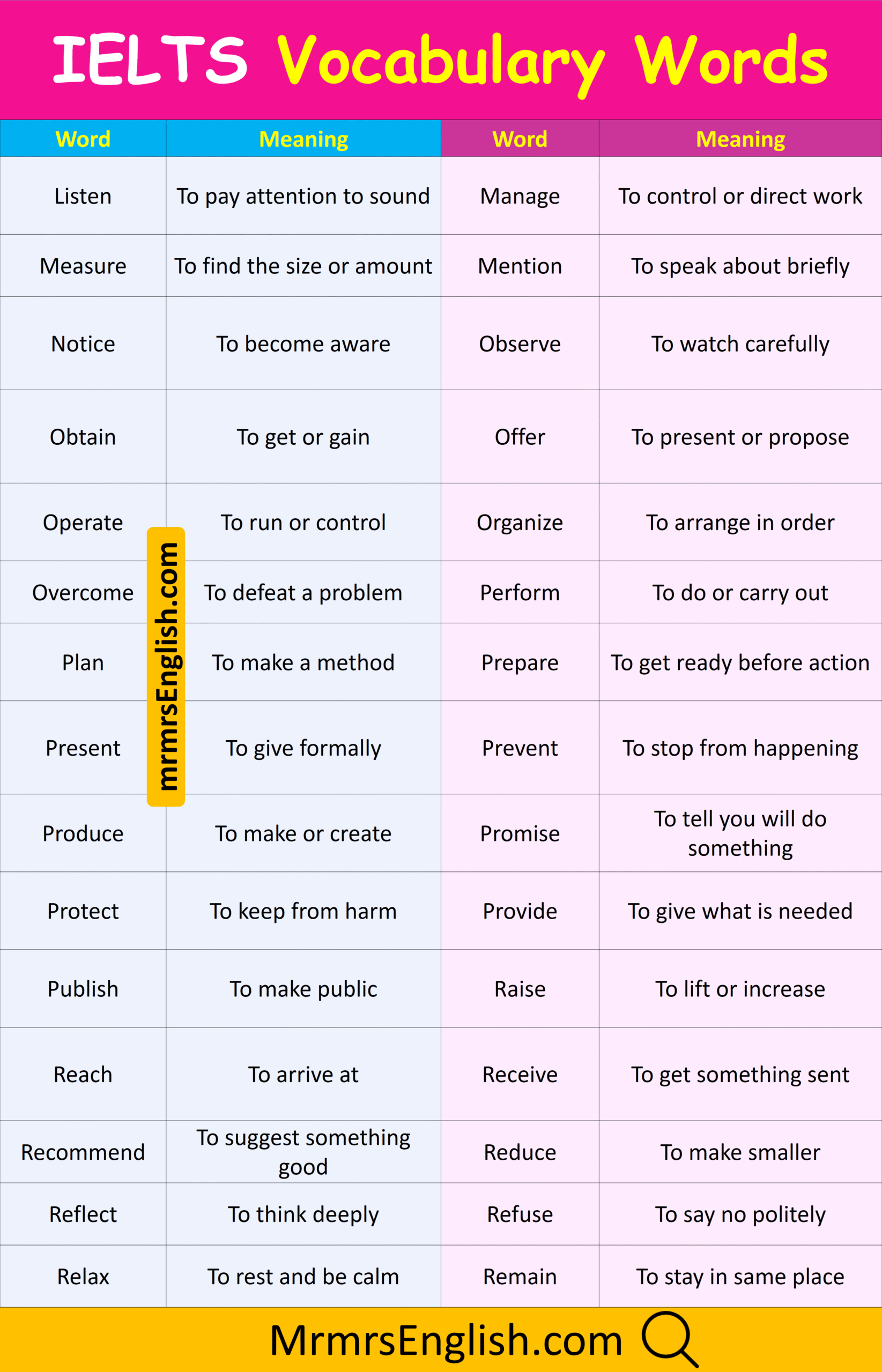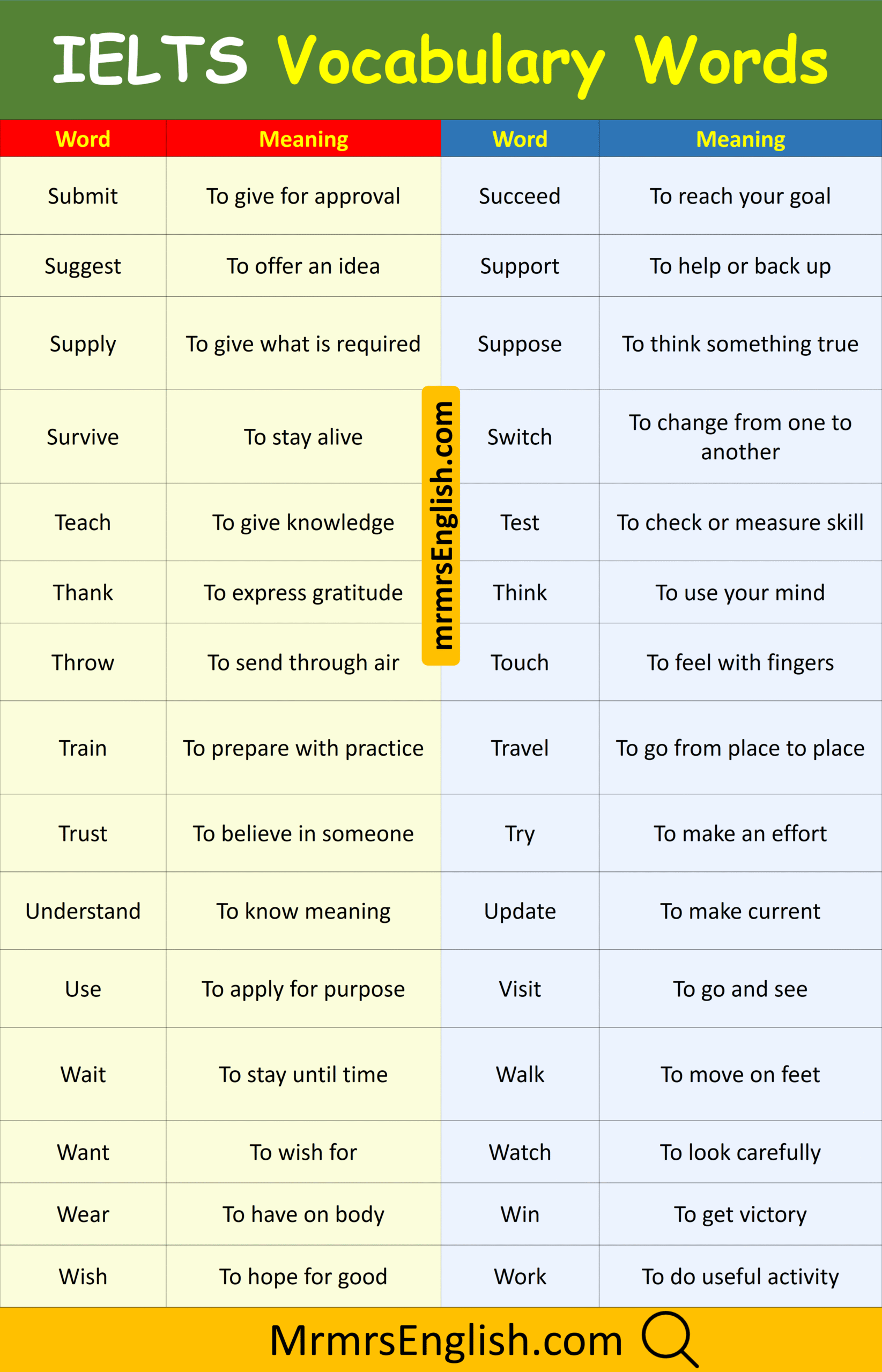 Learning IELTS vocabulary words with meanings in English is one of the best ways to prepare for the IELTS exam. A strong vocabulary helps you express your ideas clearly in speaking and writing, and it also improves your understanding in reading and listening sections. Knowing the right words can make a big difference in your overall band score. In this article, you will learn important IELTS vocabulary words with their clear meanings and pictures to make learning simple and effective. This guide is perfect for students who want to achieve a high score and communicate confidently in English.