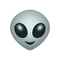 A green or gray face with large eyes; often used for something strange, mysterious, or “out of this world.”
