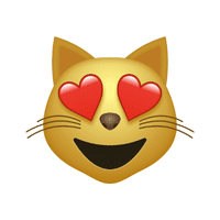 A cat face with heart-shaped eyes expresses love, excitement, or adoration.