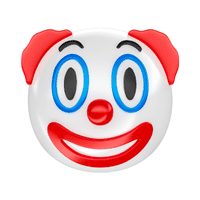 A clown face with makeup; used for humor, silliness, or sometimes to describe someone foolish.