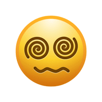 Swirly or crossed-out eyes, showing confusion or feeling like the world is spinning.