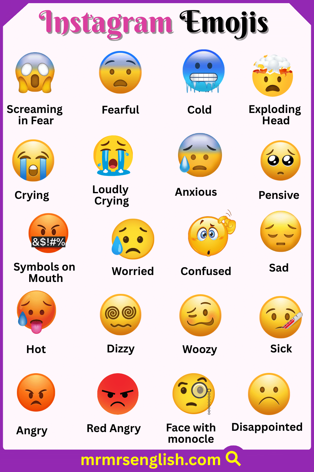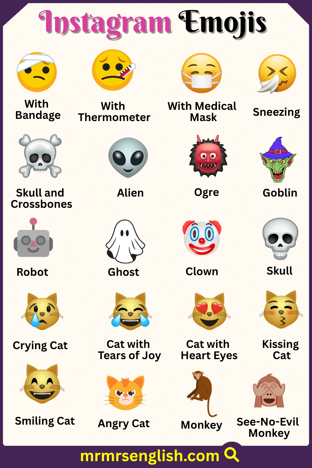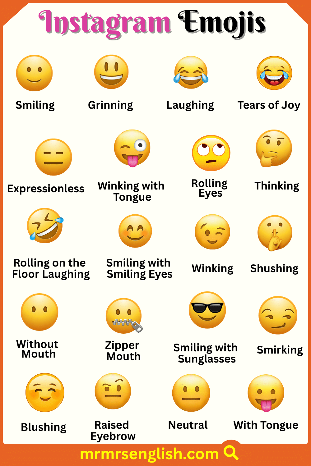 Instagram emojis are a fun and creative way to express feelings, reactions, and messages without using long sentences. Whether we are commenting on a photo, replying to a story, or chatting in DMs, emojis help us communicate quickly and clearly. Every emoji has a different meaning, and knowing these meanings helps us use the right emoji for the right situation. In this article, you will learn a complete list of Instagram emojis with their names and pictures so you can easily recognize them and understand what each emoji represents. This guide is perfect for students, social media users, and anyone who wants to improve their communication and make their Instagram messages more expressive.