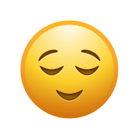 A soft smile with closed eyes, used when stress is gone and you feel calm again.