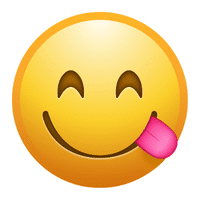 A smiling face with a tongue out, expressing enjoyment of tasty or delicious food.
