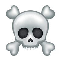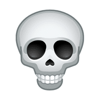 A plain skull; used to express shock, laughter (“I’m dead!”), or something scary.