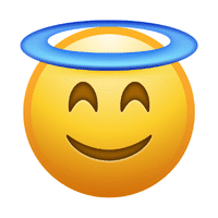Shows a sweet, innocent smile, used when pretending to be “angelic” or good.