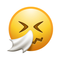 A face sneezing into a tissue shows being sick, allergic, or reacting to something.