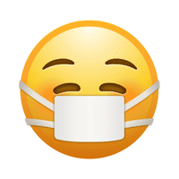 A face wearing a white mask; often used to show sickness, caution, or concern for health and hygiene.