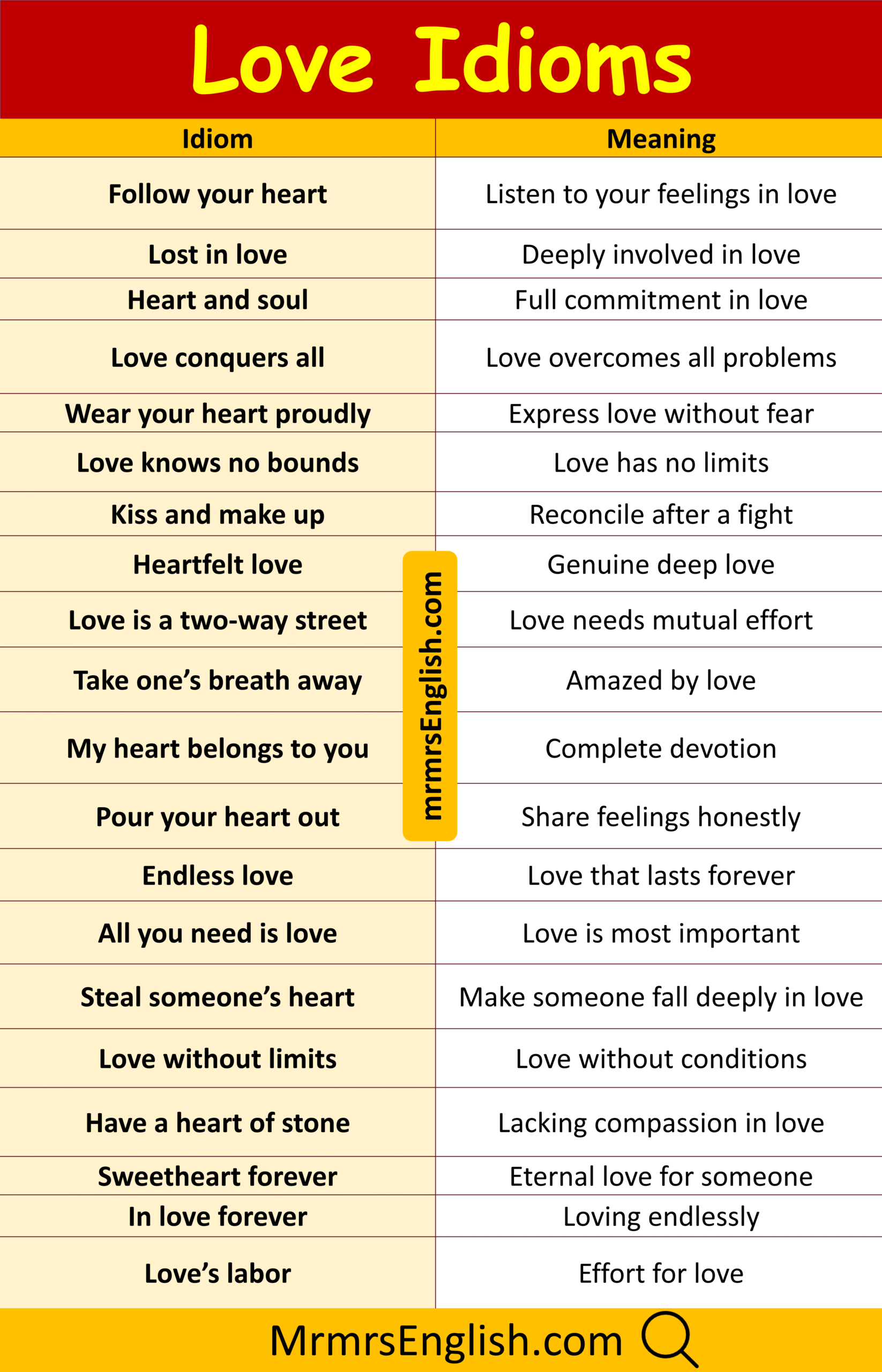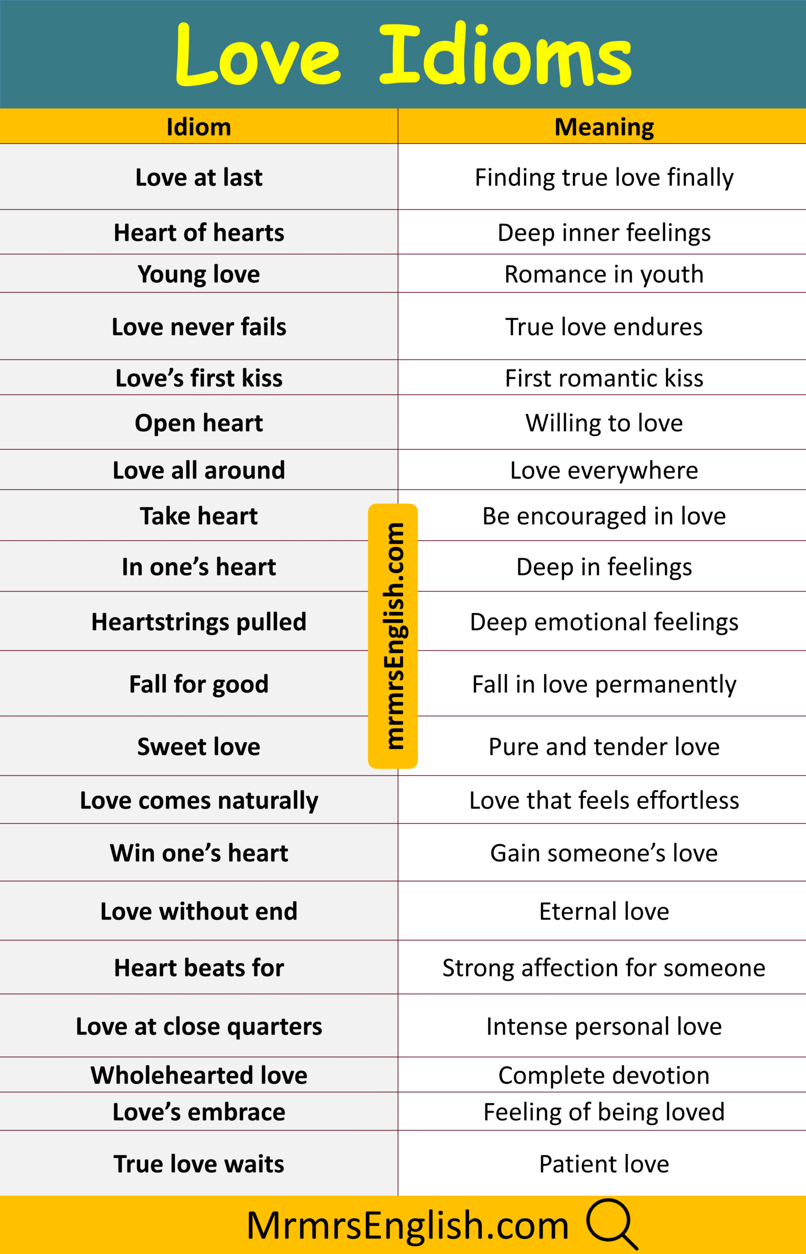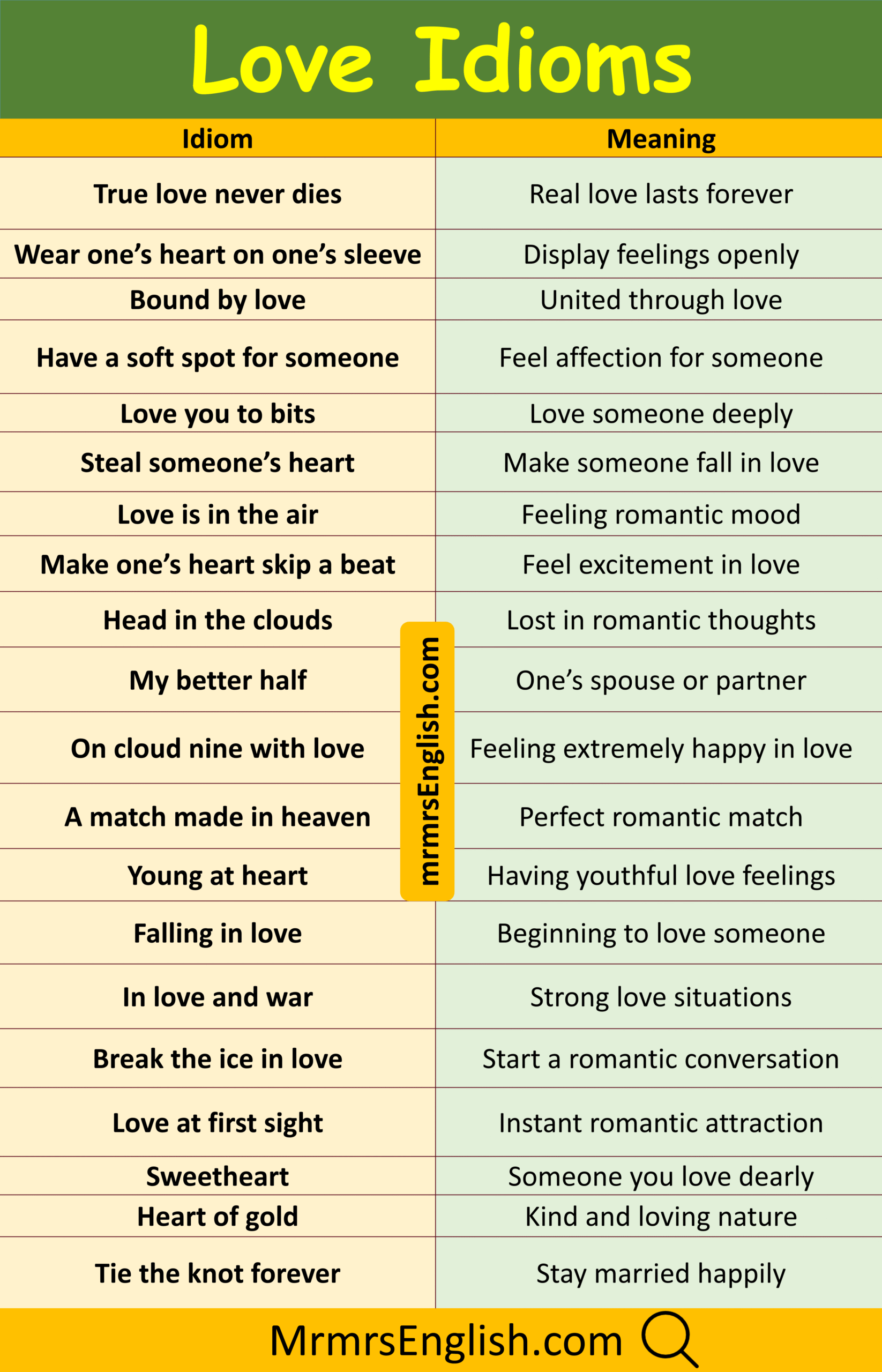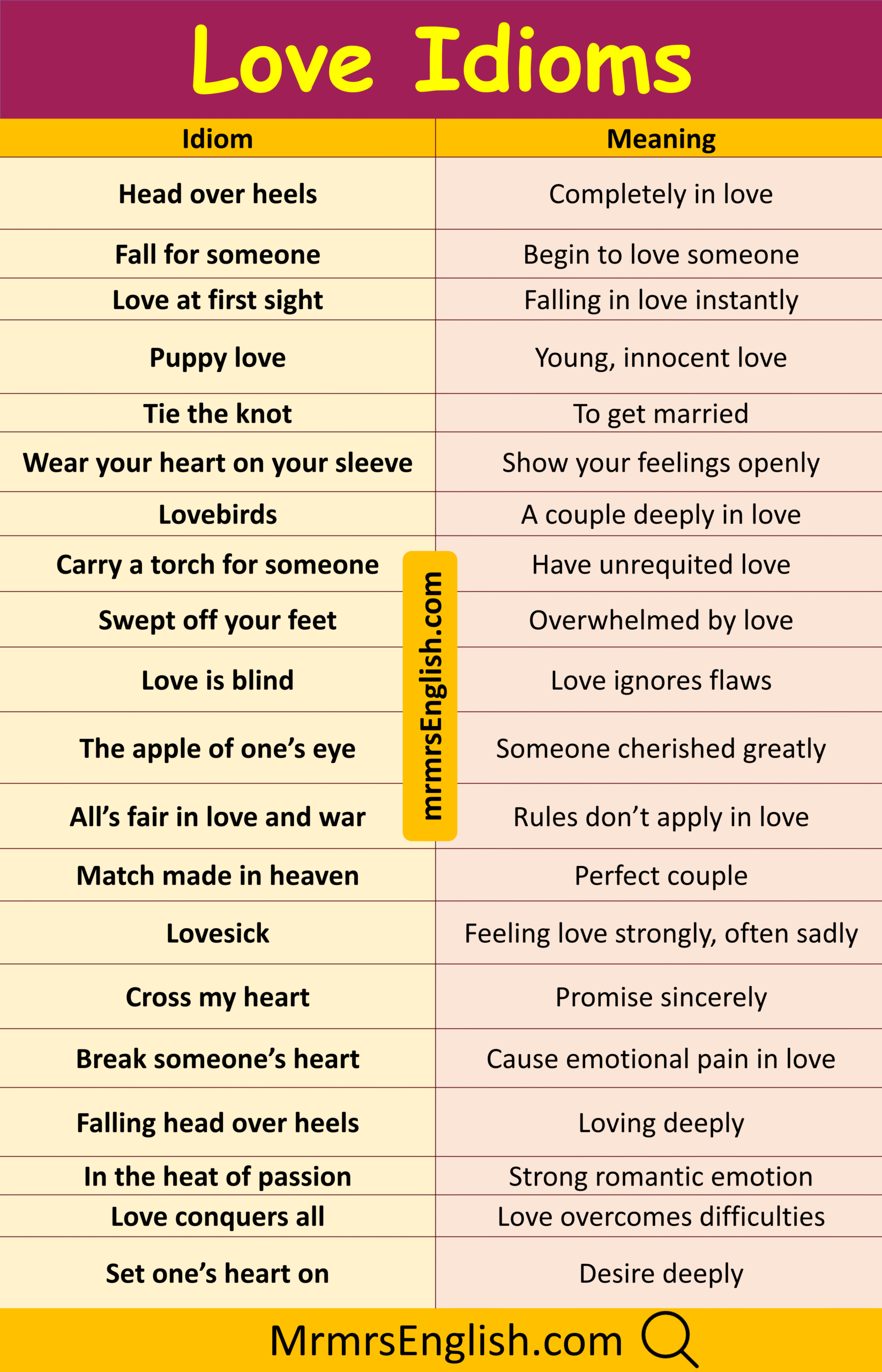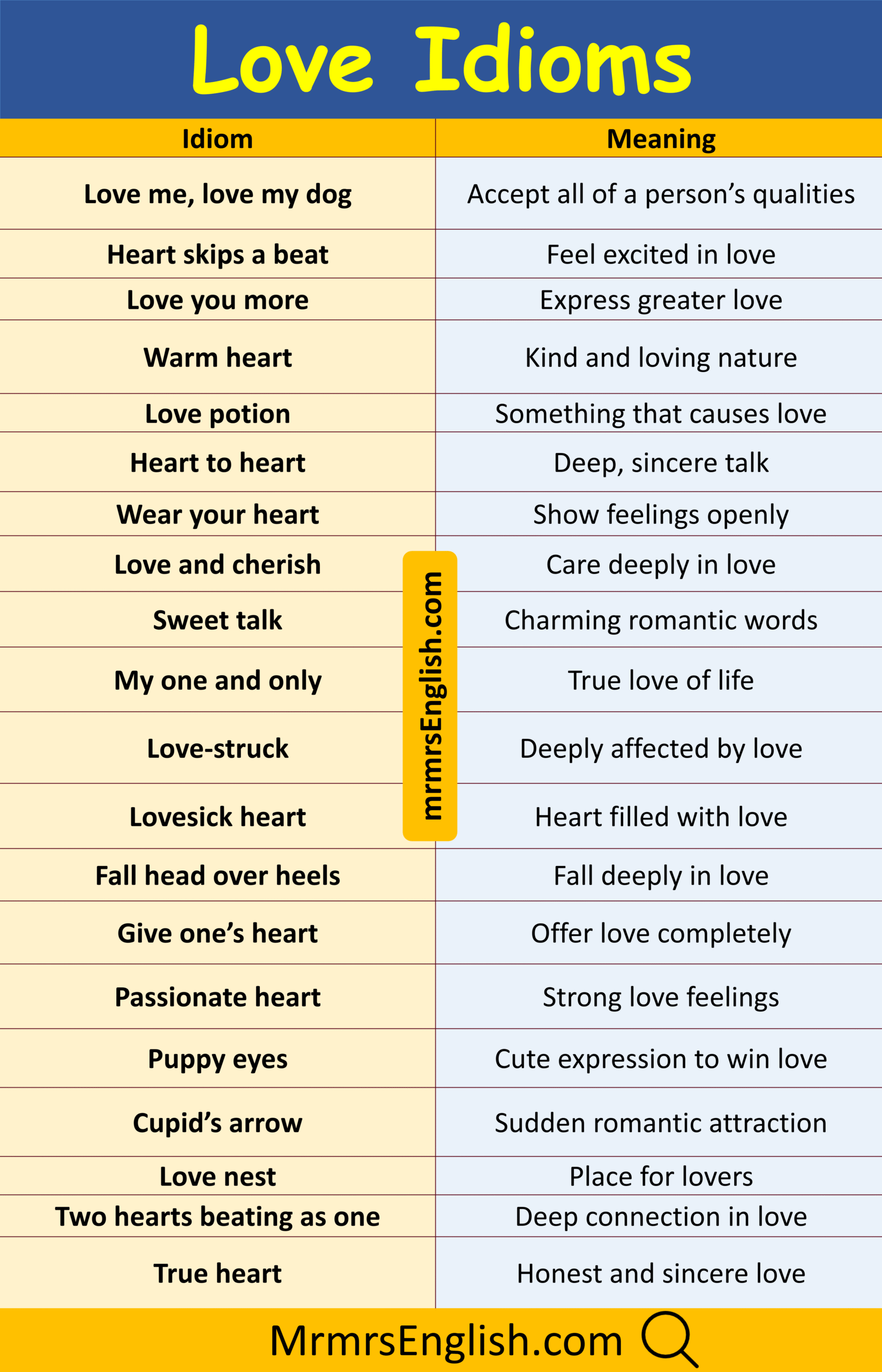 Simple Love Idiom with Their Meanings
