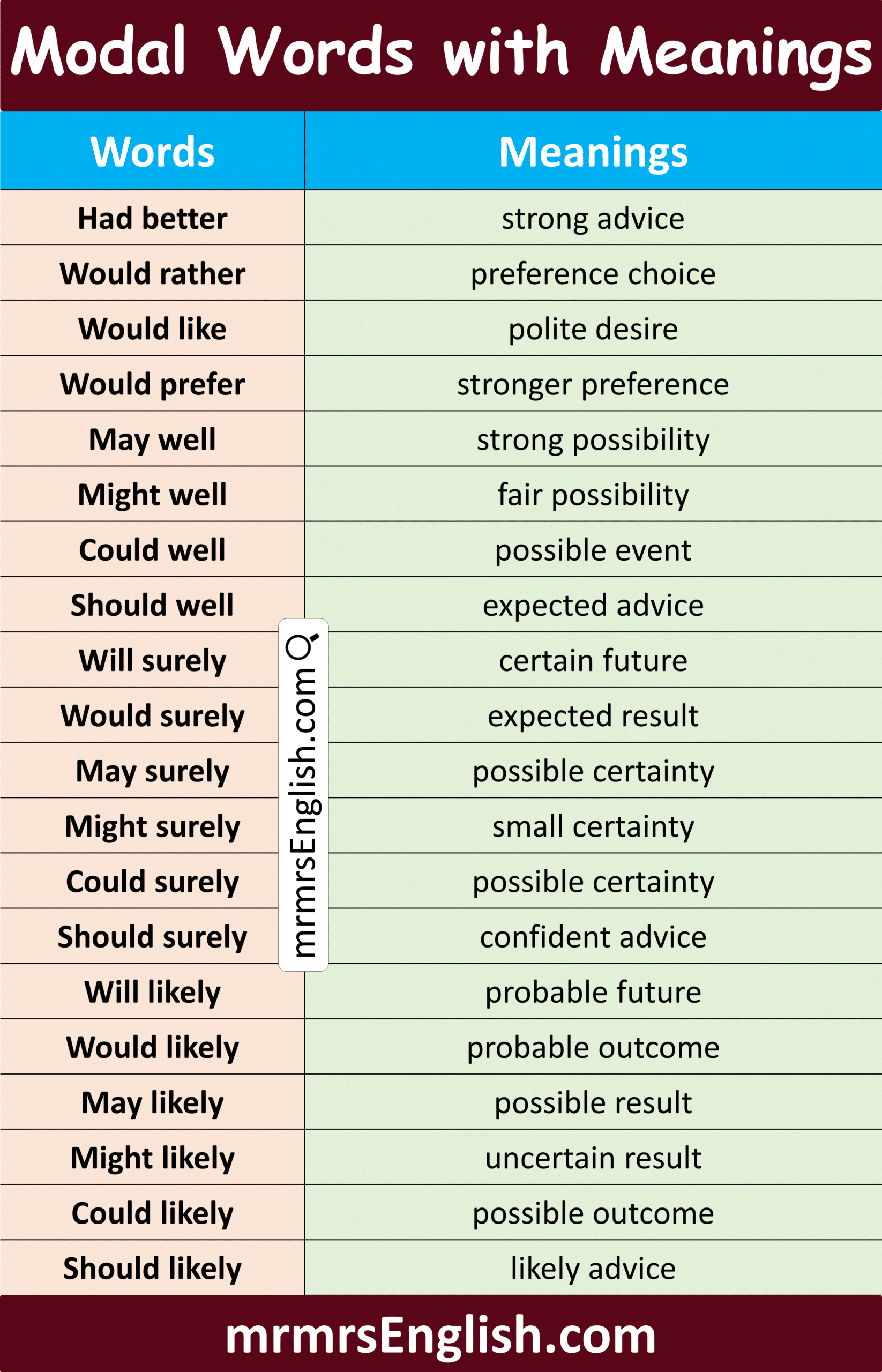 Useful Modal Word with Meaning