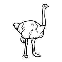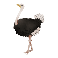 Black-necked ostrich; native to southern Africa, strong, fast, dark-feathered, calm, raised for commercial meat and decorative feathers.