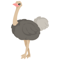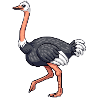 Silver ostrich; pale-gray feathered, medium size, calm, social, fast runner, resilient, suitable for farm or open wild environments.