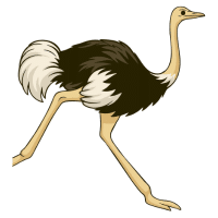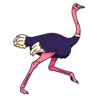 Aggressive ostrich; strong, medium-large, territorial, fast, social within flock, resilient, not ideal for beginner farm owners.