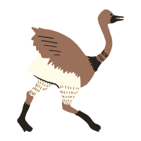 Yellowish ostrich; medium-large, calm, social, hardy, fast runner, suitable for farms, ornamental use, and natural grassland habitats.