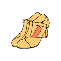 Shoes with a strap running up the foot and another across, forming a “T” shape.
