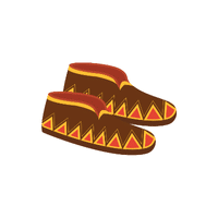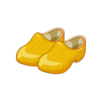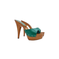 Shoes with thick soles, often closed at the front and open at the back, made from wood or leather.