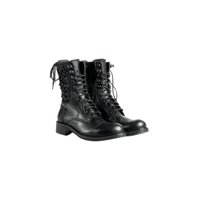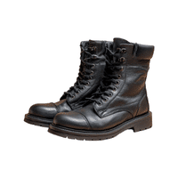 Strong lace-up boots with thick soles, originally made for soldiers but now popular as fashion wear.